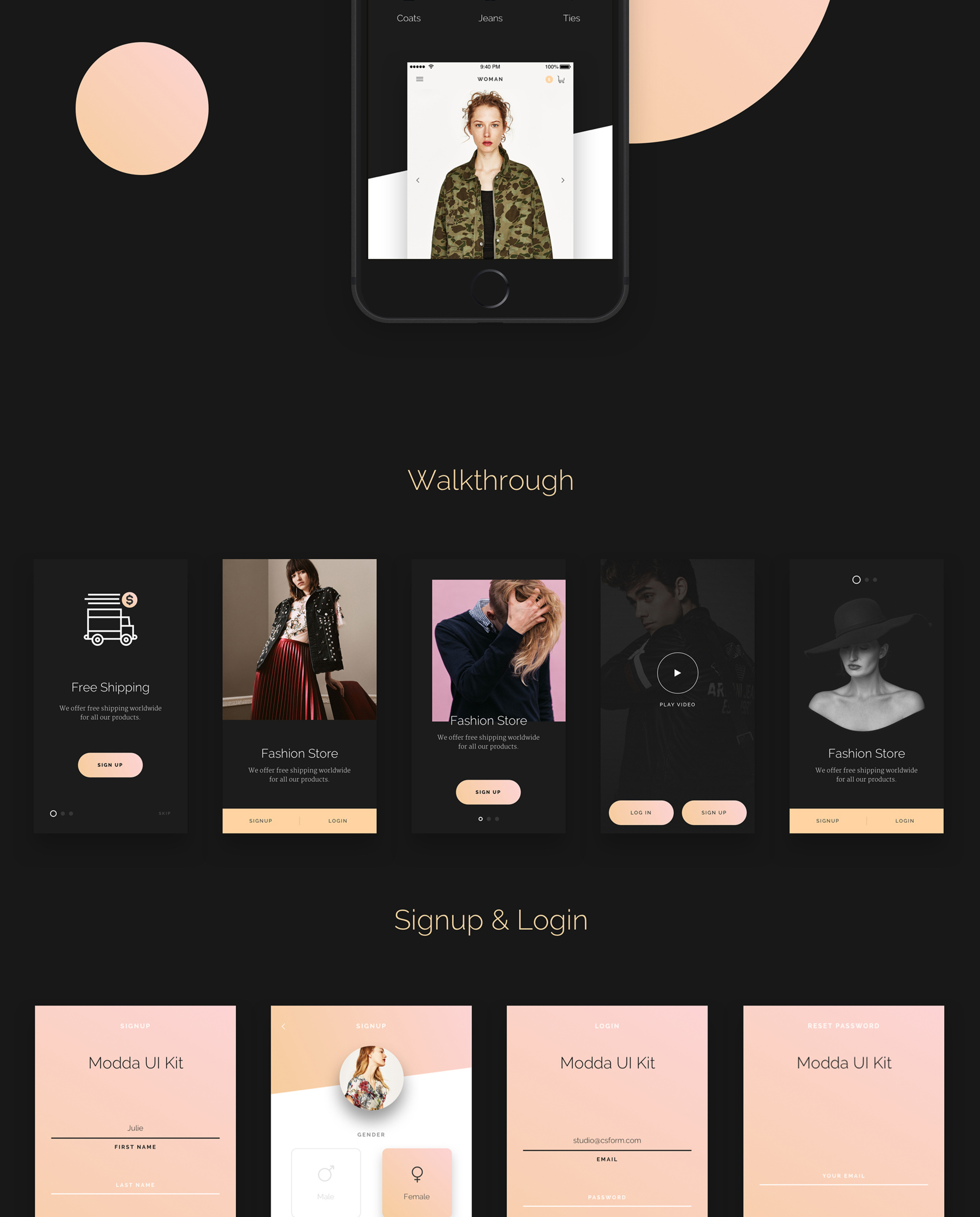 灵感来自时尚Modda是必备的高级移动UI套件,拥有超过50多个独特的应用程序屏幕。 Modda包括您设计,开发或准备您的电子商务应用程序所需的一切,甚至更多!