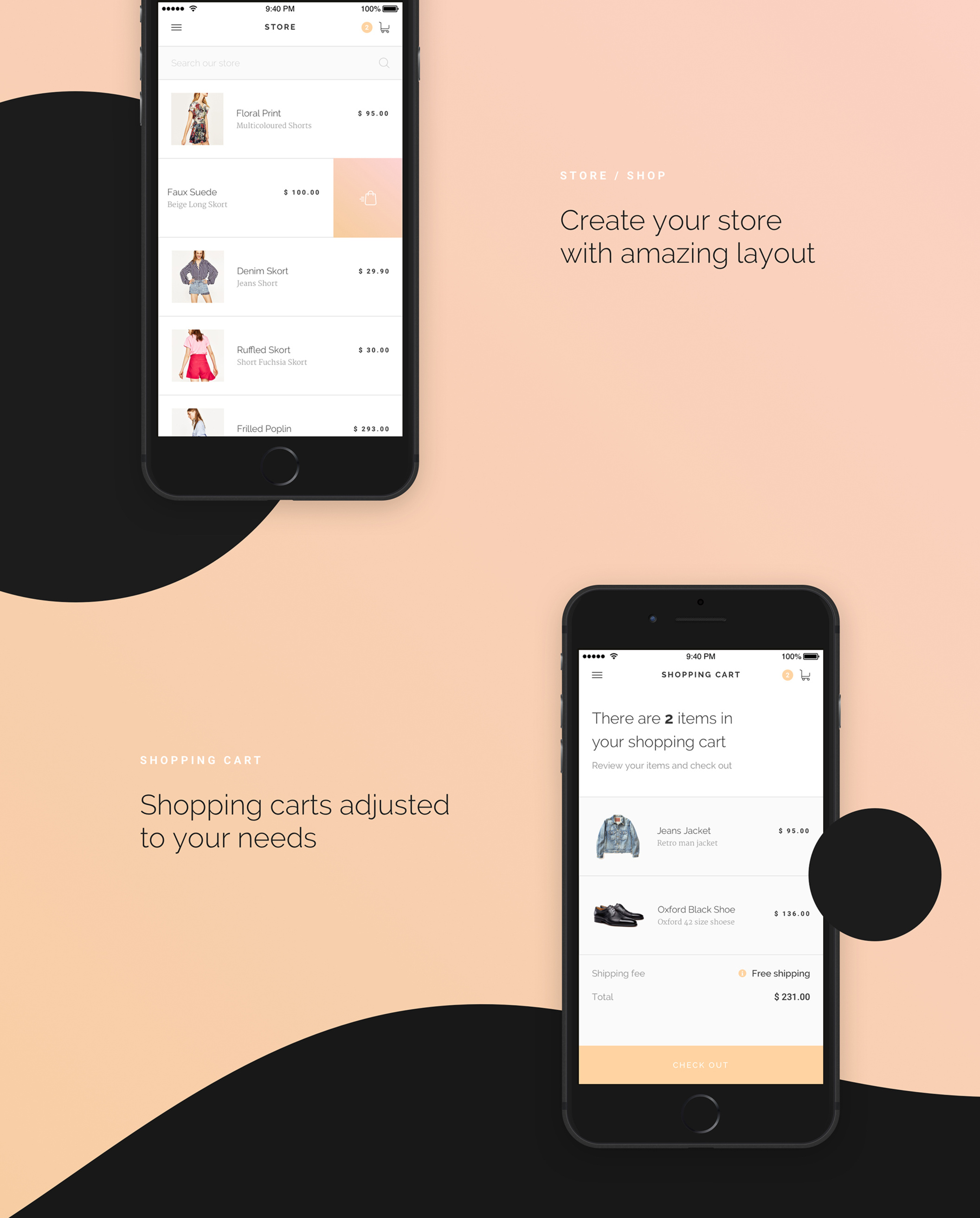 它专为时尚电子商务而设计,所有组件和屏幕都易于定制。所有的图形都是可扩展的,矢量基于仔细命名和分组的图层,以方便使用。使用的字体是免费的,从谷歌的字体。
