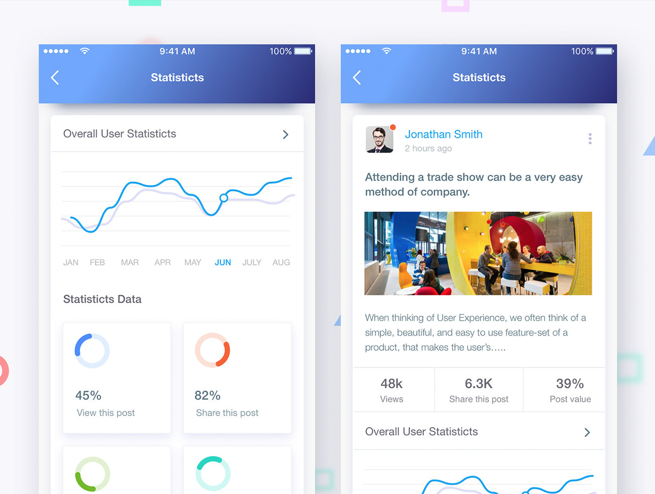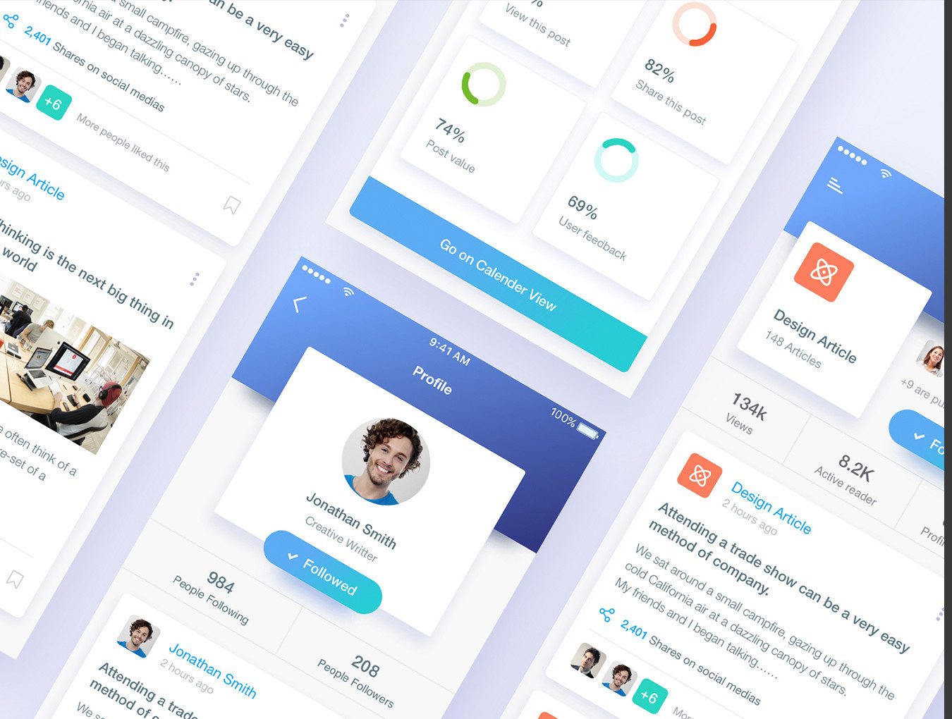 酷的界面简单和用户友好。基本上,这个应用程序设计平台将显示饲料如何看起来像一个博客/文章应用程序和单个视图。此外,有不同类型的设计版本的不同类型的配置文件。