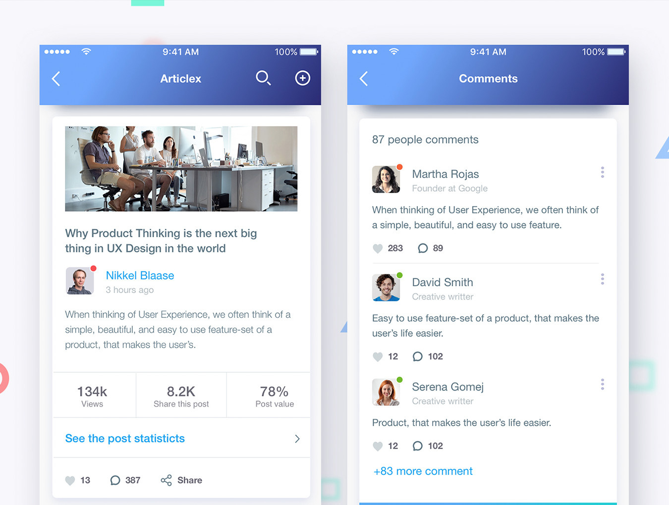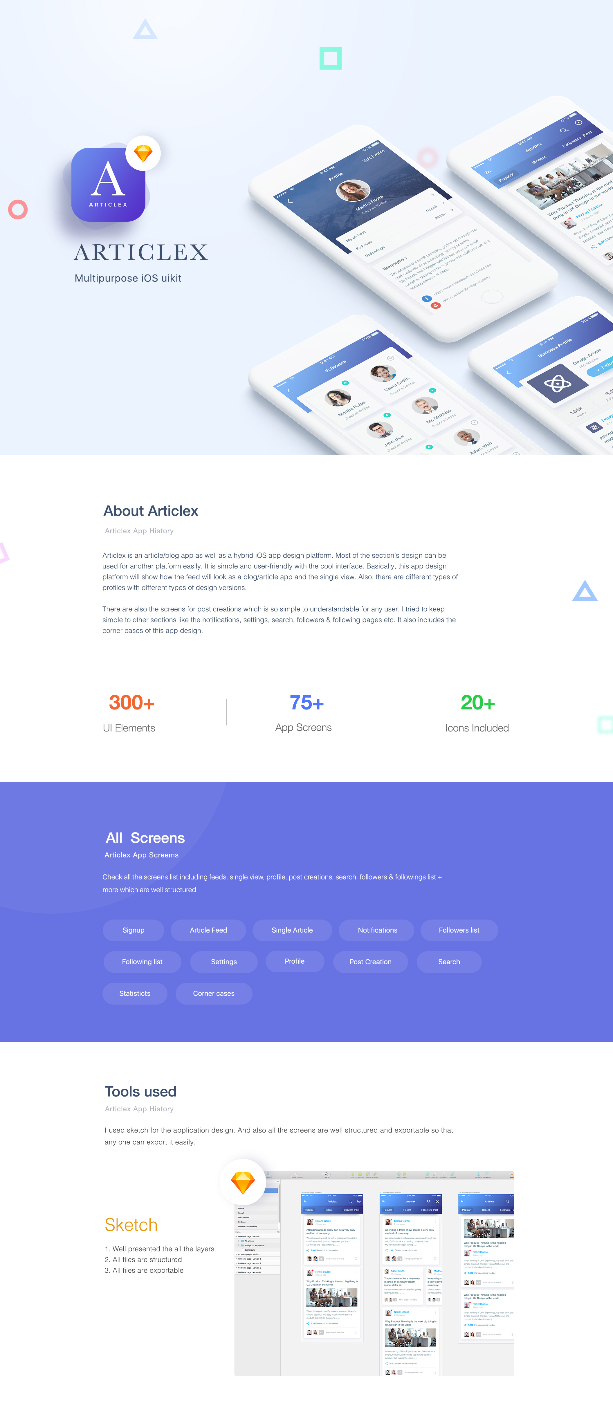 Articlex是一个文章/博客应用程序以及一个混合iOS应用程序设计平台。该部分的大部分设计可以轻松用于其他平台。