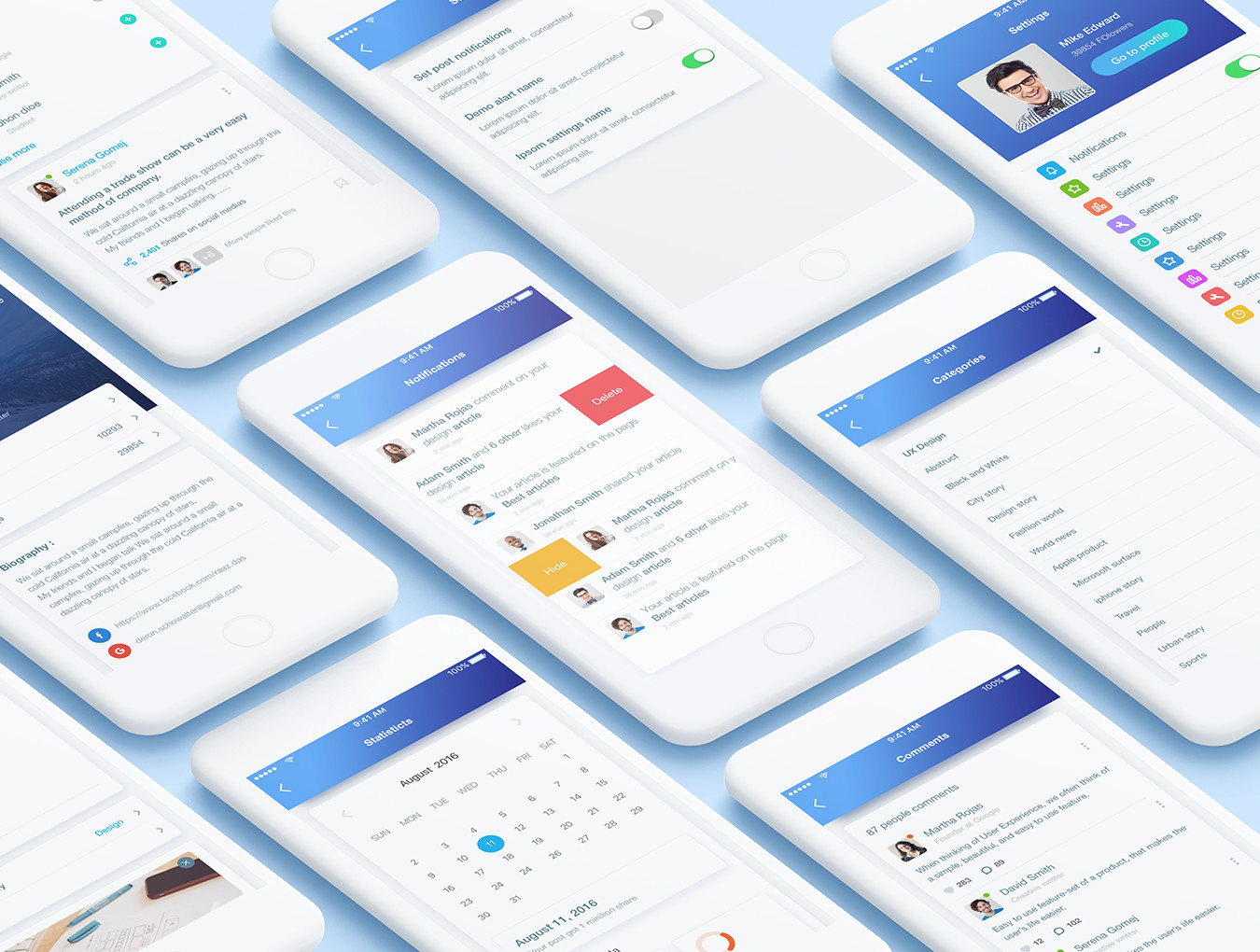 有300多个用户界面元素,75 +屏幕和20 +图标包括在内。所有的屏幕都结构合理,并准备出口。有饲料,单一的看法,配置文件,发布创建,搜索,追随者和追随者列表+更多的屏幕添加。