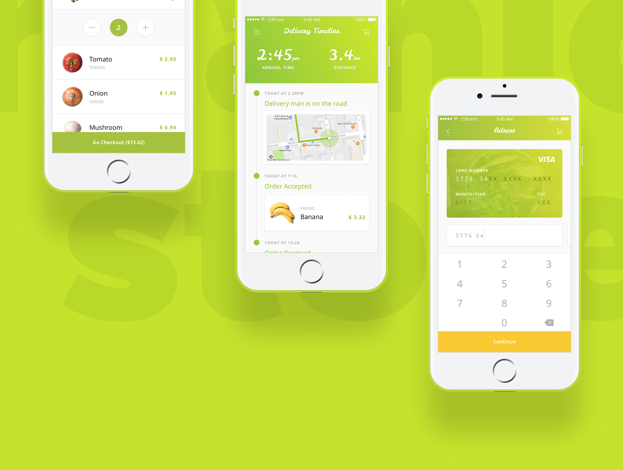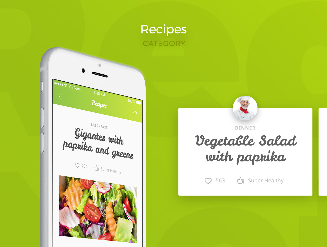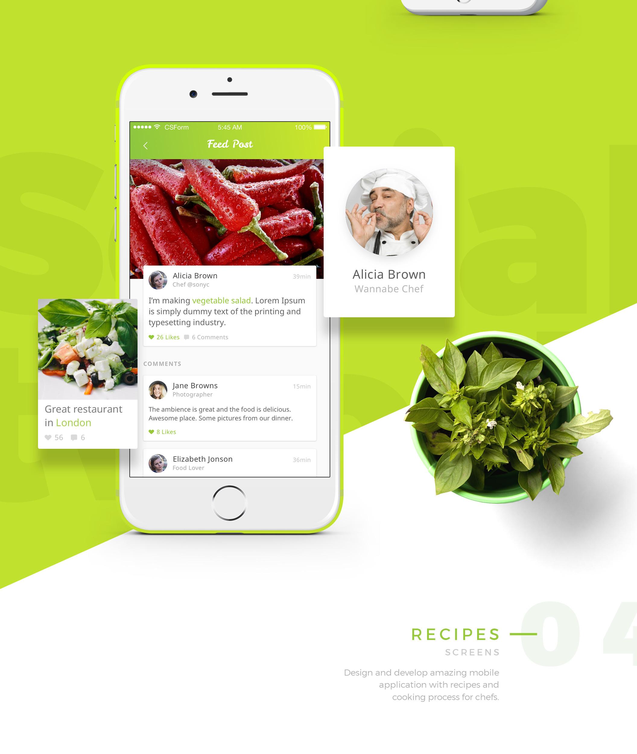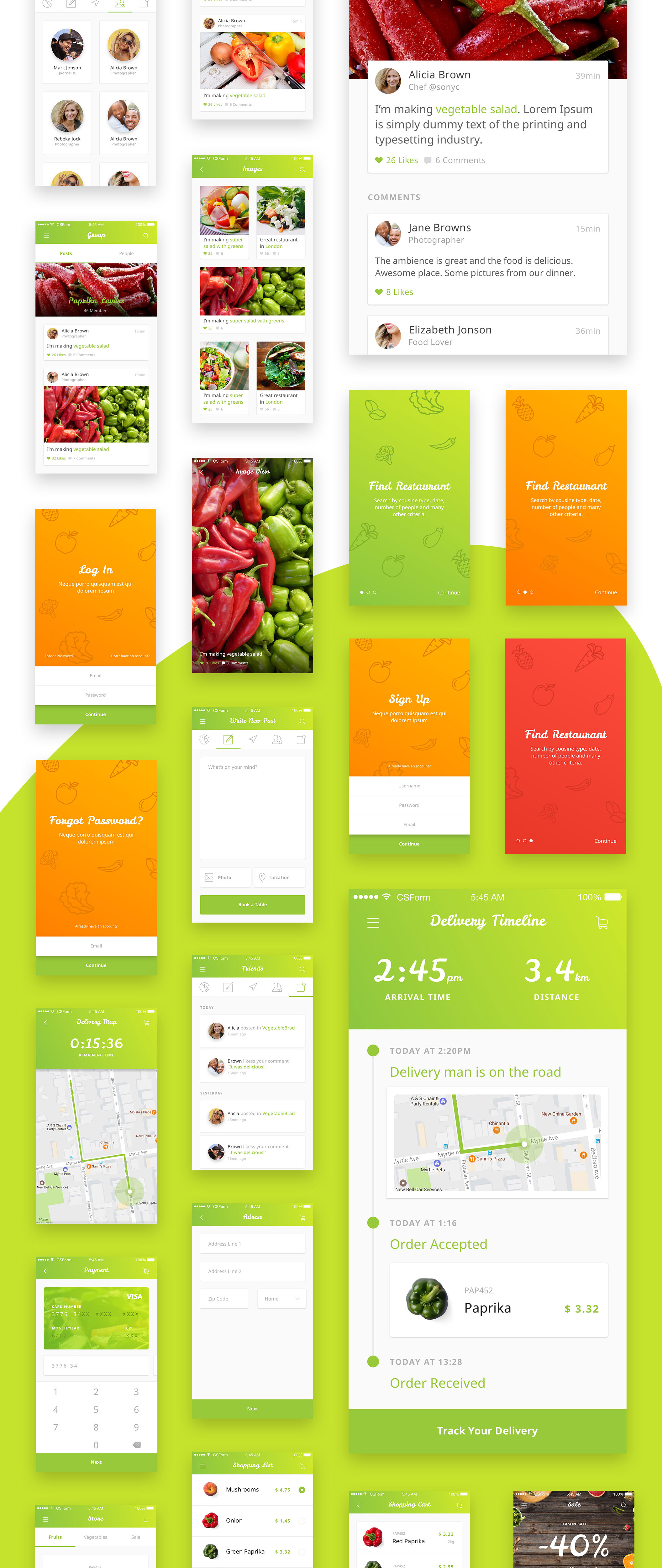 创建有机健康食品餐厅与食品菜单的移动应用程序,预订表过程等等。您还可以为有机和健康食品爱好者设计社交网络应用程序与新闻源,组和通知或设计食谱的应用程序的水果和蔬菜食谱的厨师。您可以通过烹饪过程画面显示食谱。还有一个健康的食品商店的应用程序,蔬菜和水果,购物清单,付款过程和屏幕,您可以在地图上跟踪您的交付。