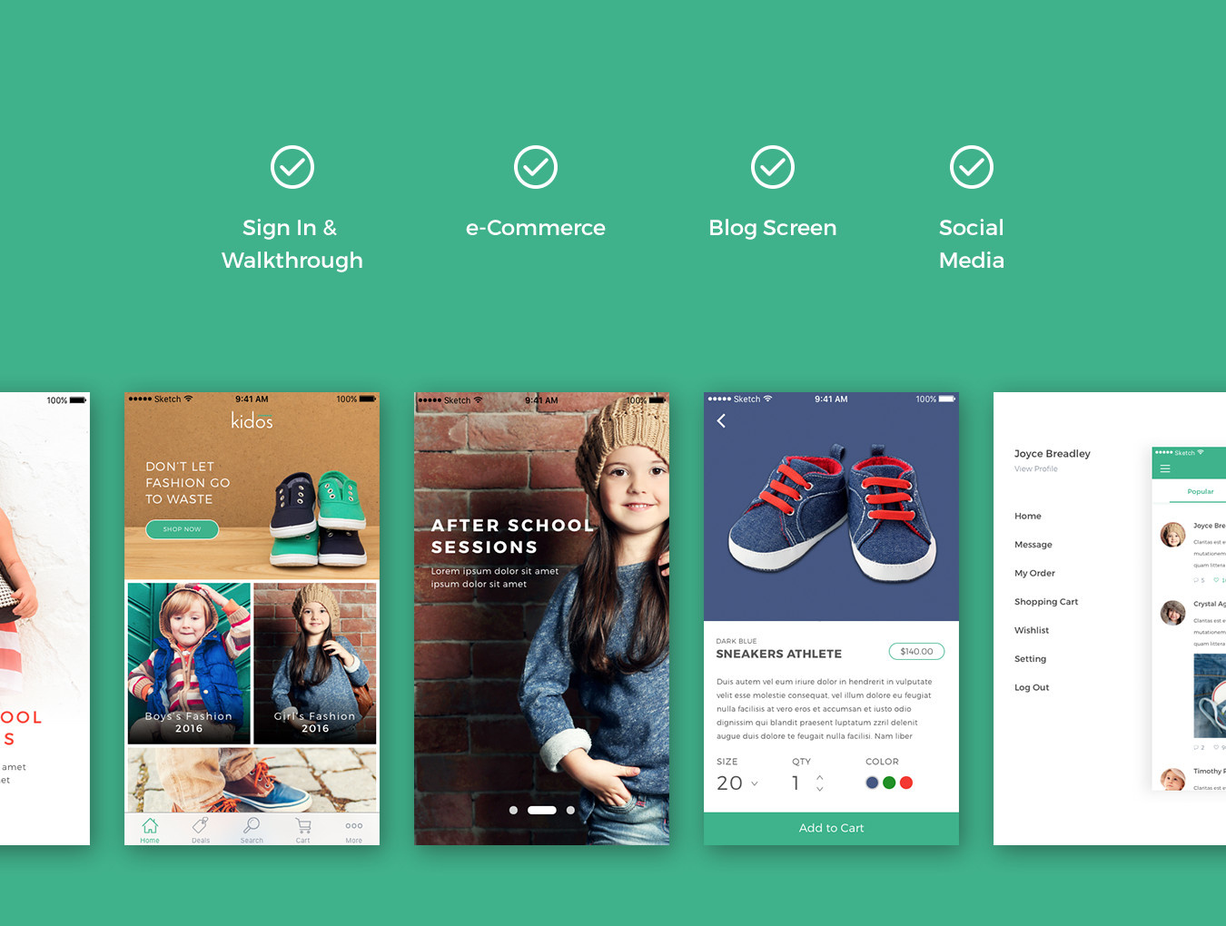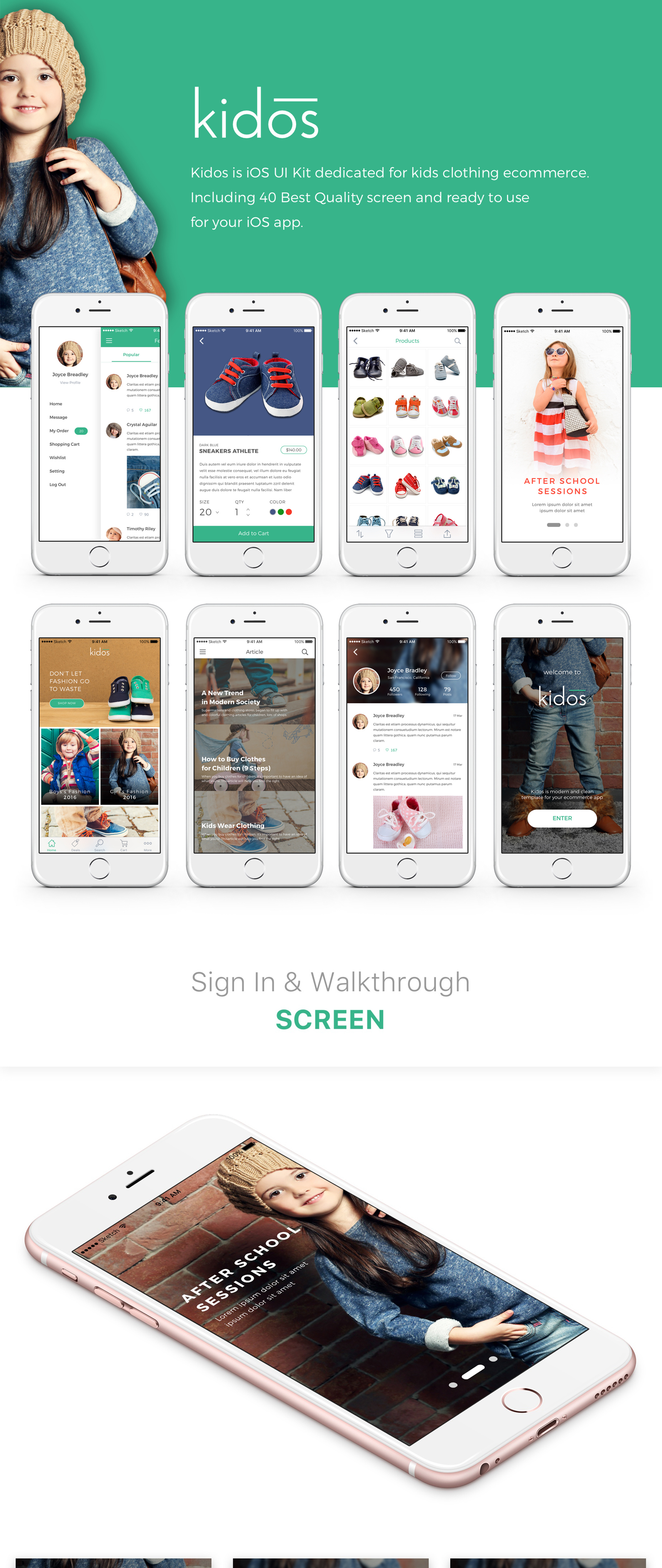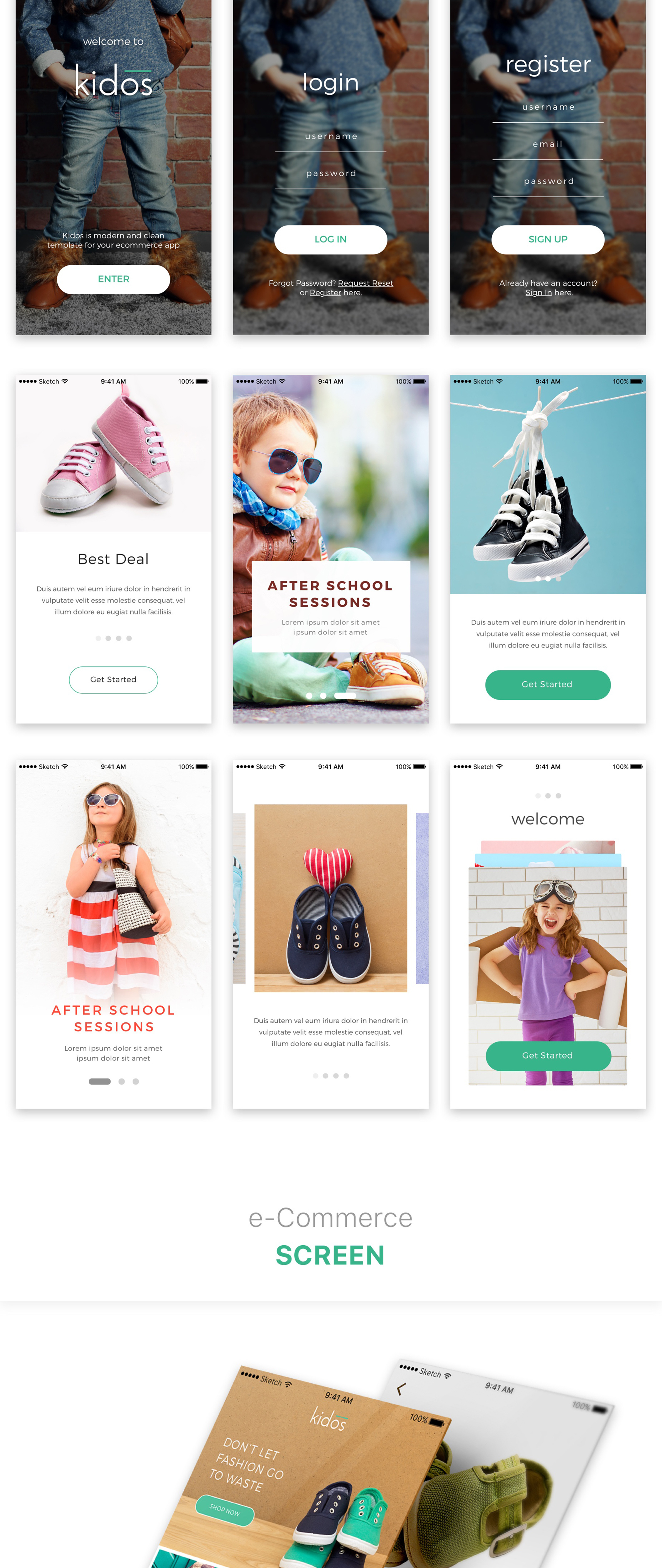 Kidos是专为儿童服装时尚电子商务而设计的完美iOS UI套件。 Kidos iOS UI工具包包括40个用于Photoshop和Sketch的最佳质量的iOS移动屏幕模板。此UI套件已准备好用于您的iOS应用程序!