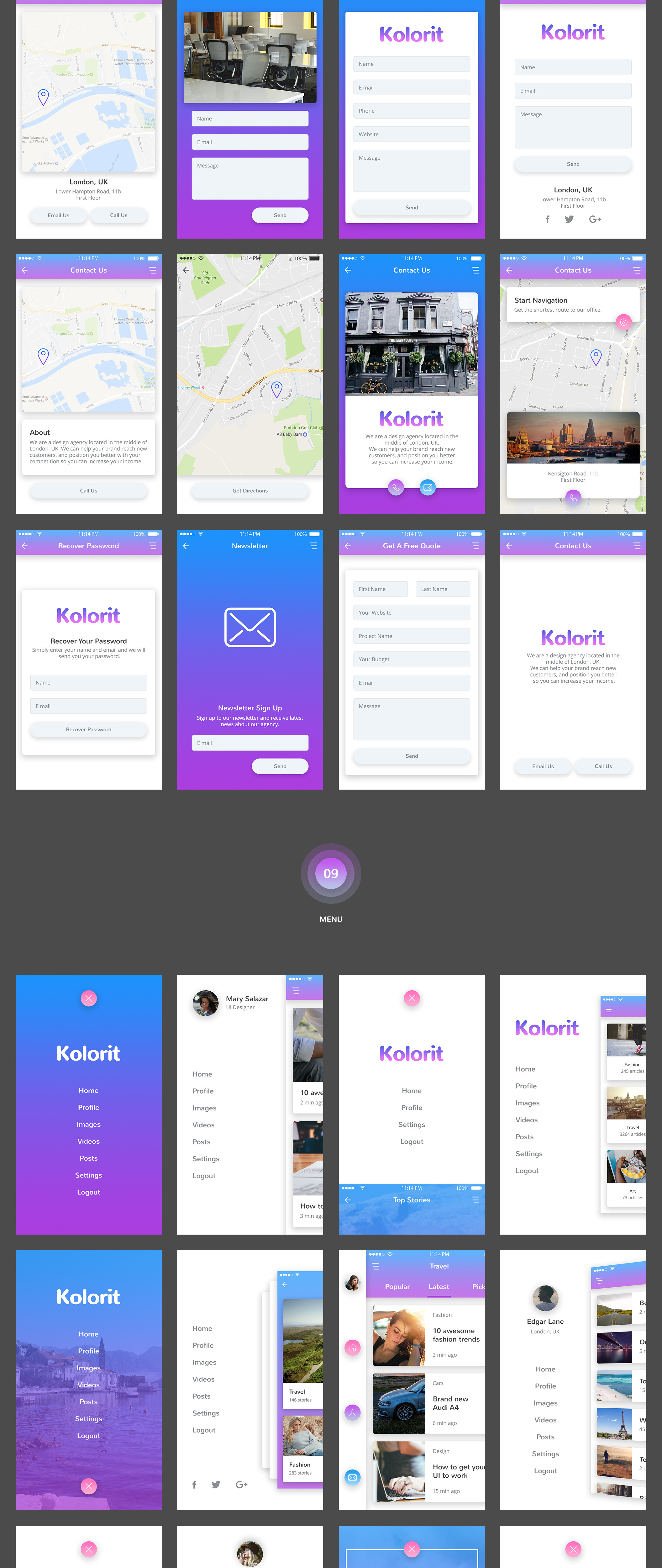多彩的用户界面工具包,为您的移动项目,Kolorit移动UI工具包