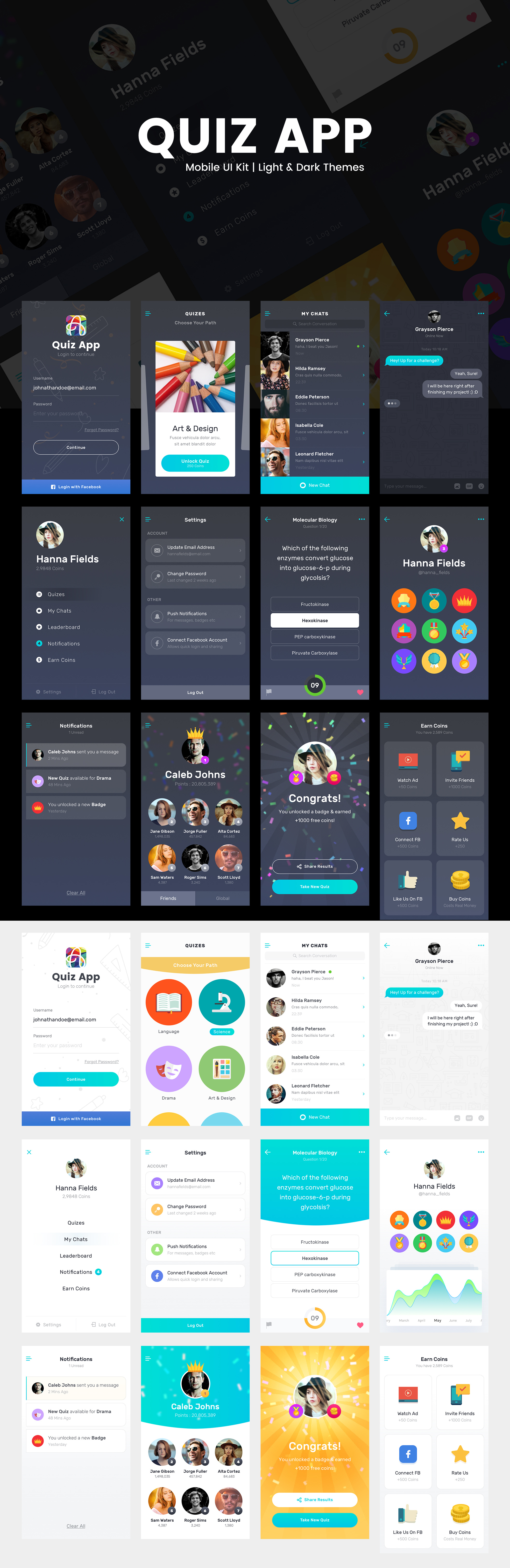 轻和黑暗的主题移动UI工具包,测验应用程序