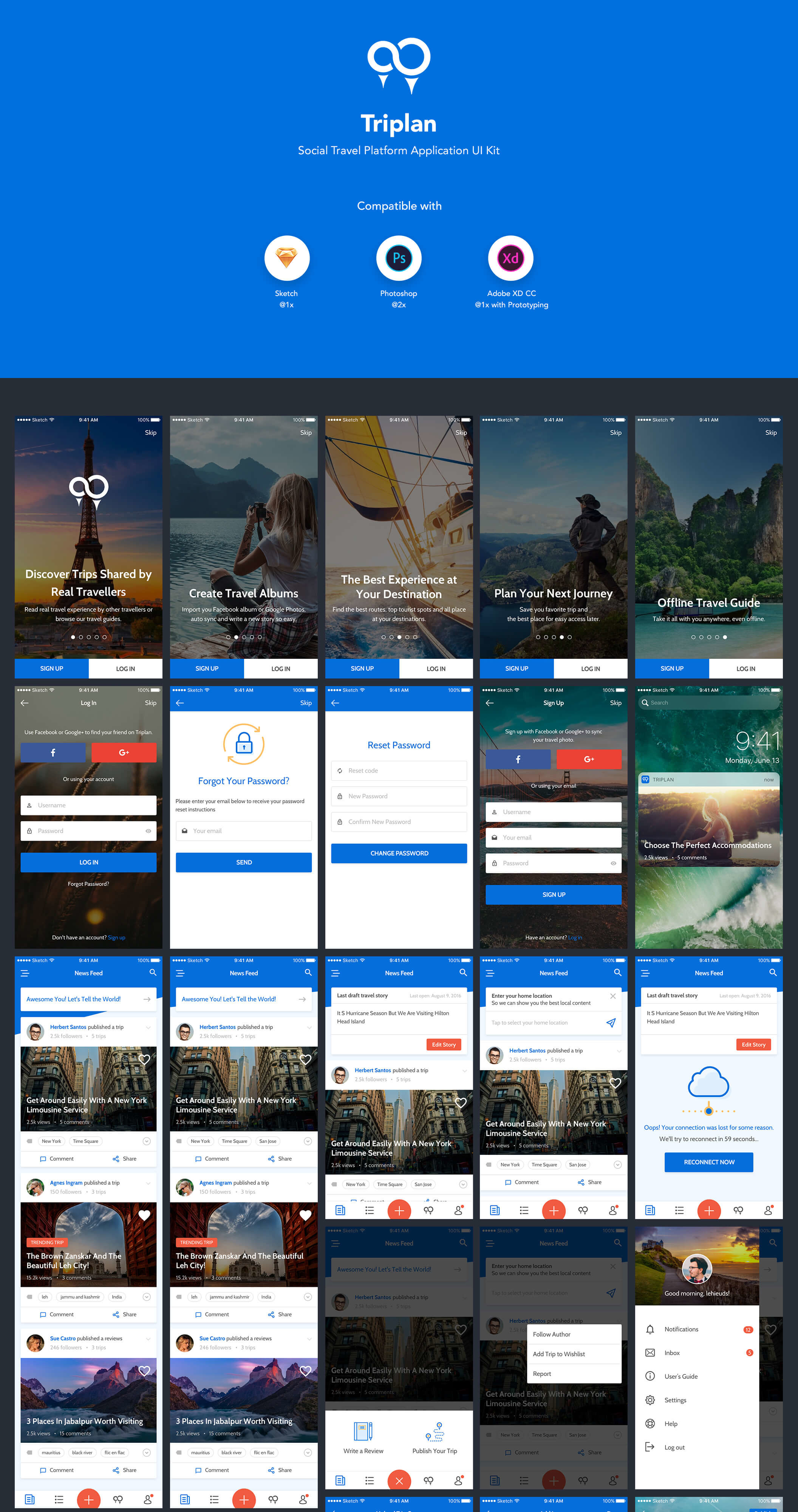 社交旅行平台移动应用程序UI工具包,Triplan