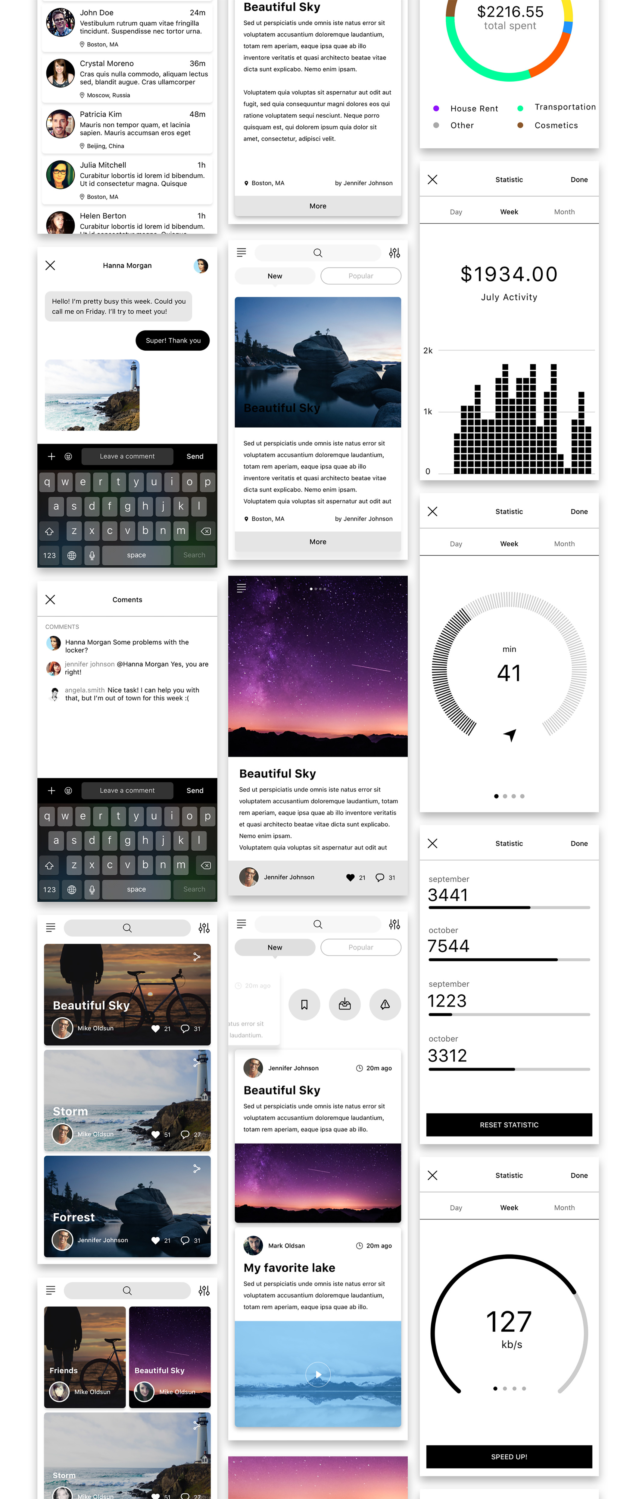 160个独特的手机屏幕和700多个自定义UI元素sketch源文件ui工具包下载