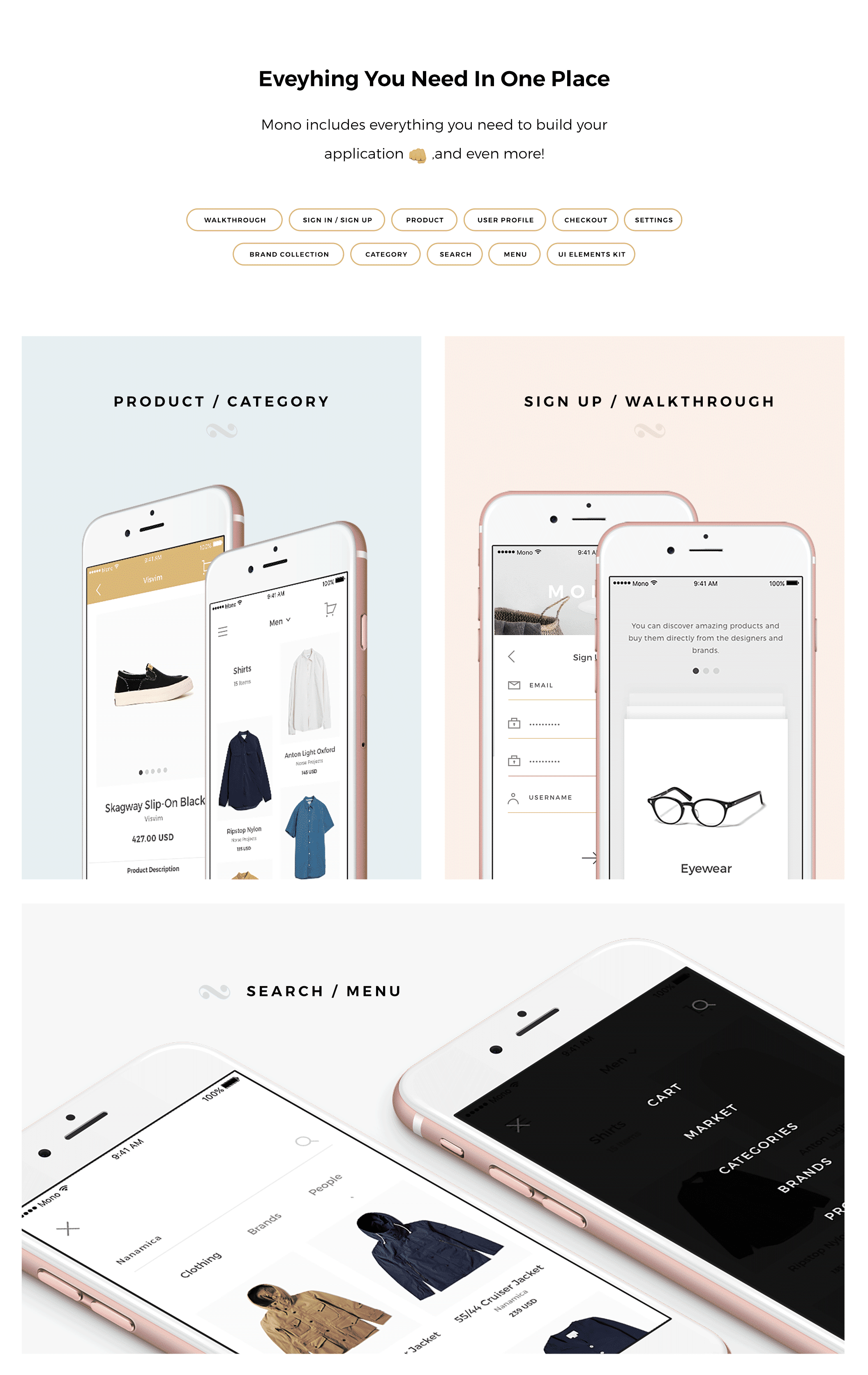 Mono iOS UI工具包,60多个电子商务项目的手机屏幕