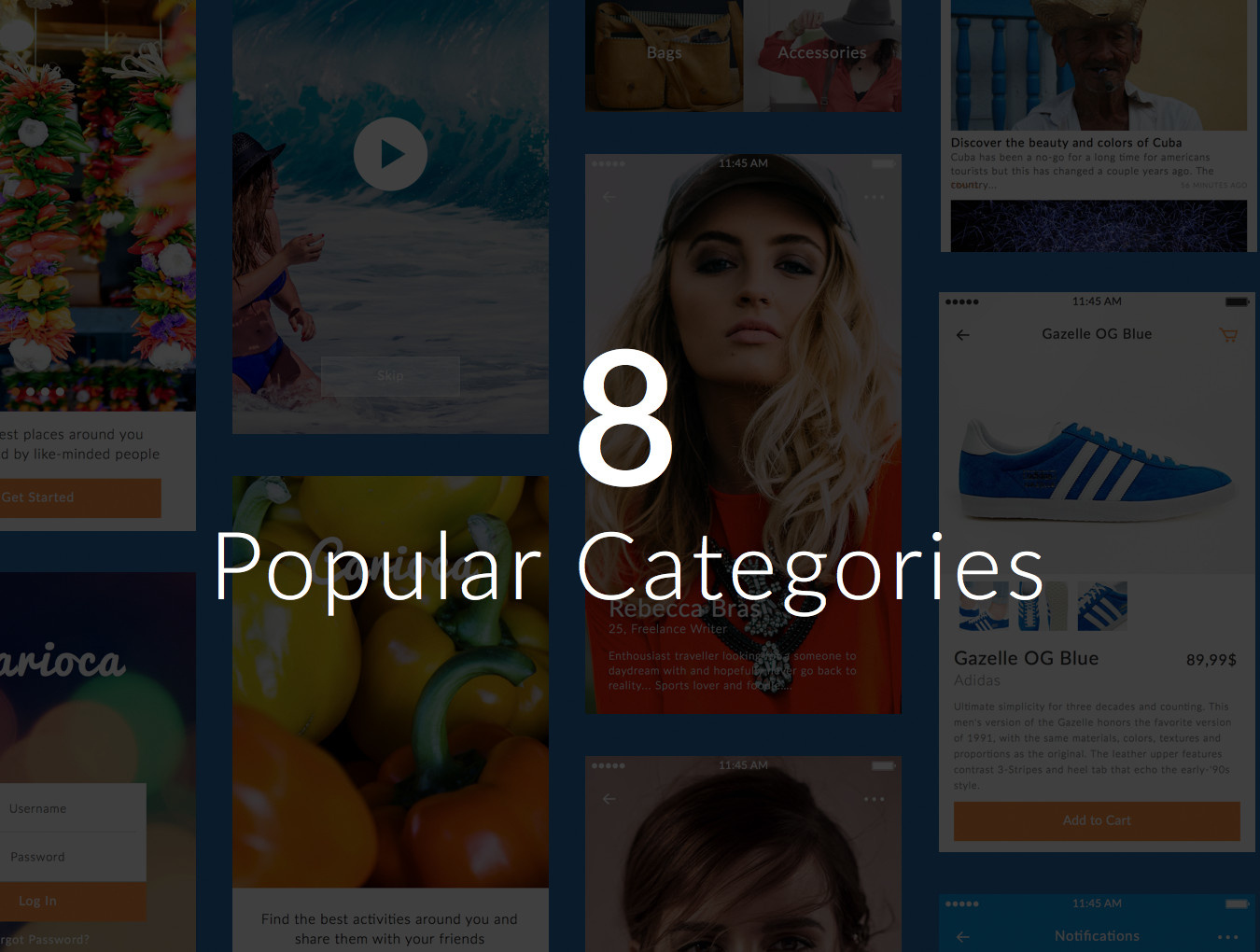 我们很自豪地推出了Carioca,这是一款夏季灵感的高级移动UI套件,拥有120个独特的屏幕,覆盖了最受欢迎的8个类别。 Carioca为Sketch设计,将为您提供有用的资源和用户界面元素,以促进您的创意设计过程,并启动您的新的移动应用程序项目。您现在可以为您的移动项目无缝地创建美丽的明亮的新设计,完美的分层和组织UI工具包。访问准备使用的质量屏幕,启动您的下一个移动项目!