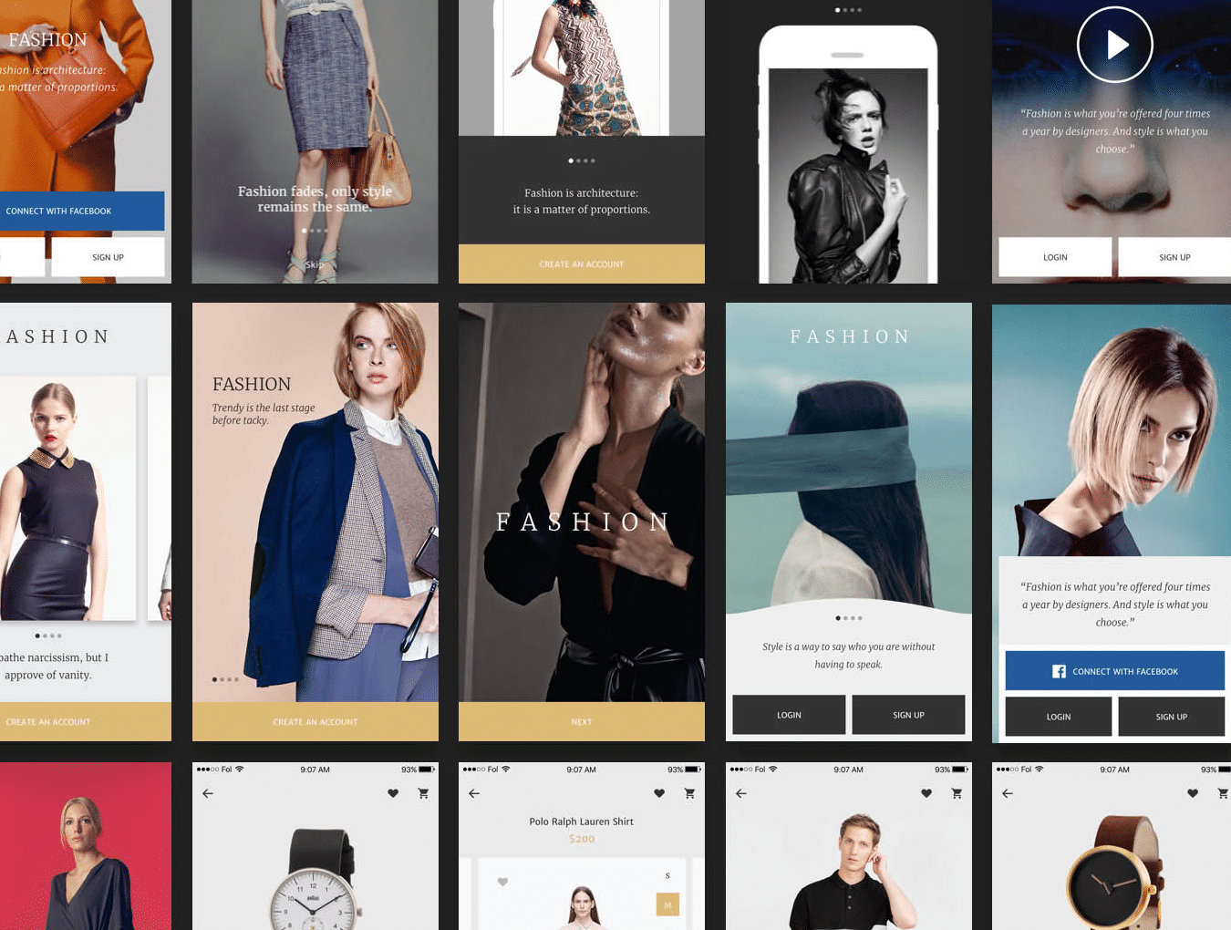 完美,优雅和酷 - 时尚是一个可爱的移动电子商务100 +屏幕UI套件。时尚UI工具包是一个非常大的用户界面工具包,可以帮助您轻松地在Sketch和Photoshop中设计整个移动应用程序。适用于Sketch 3.7和Photoshop CS5 - CC。