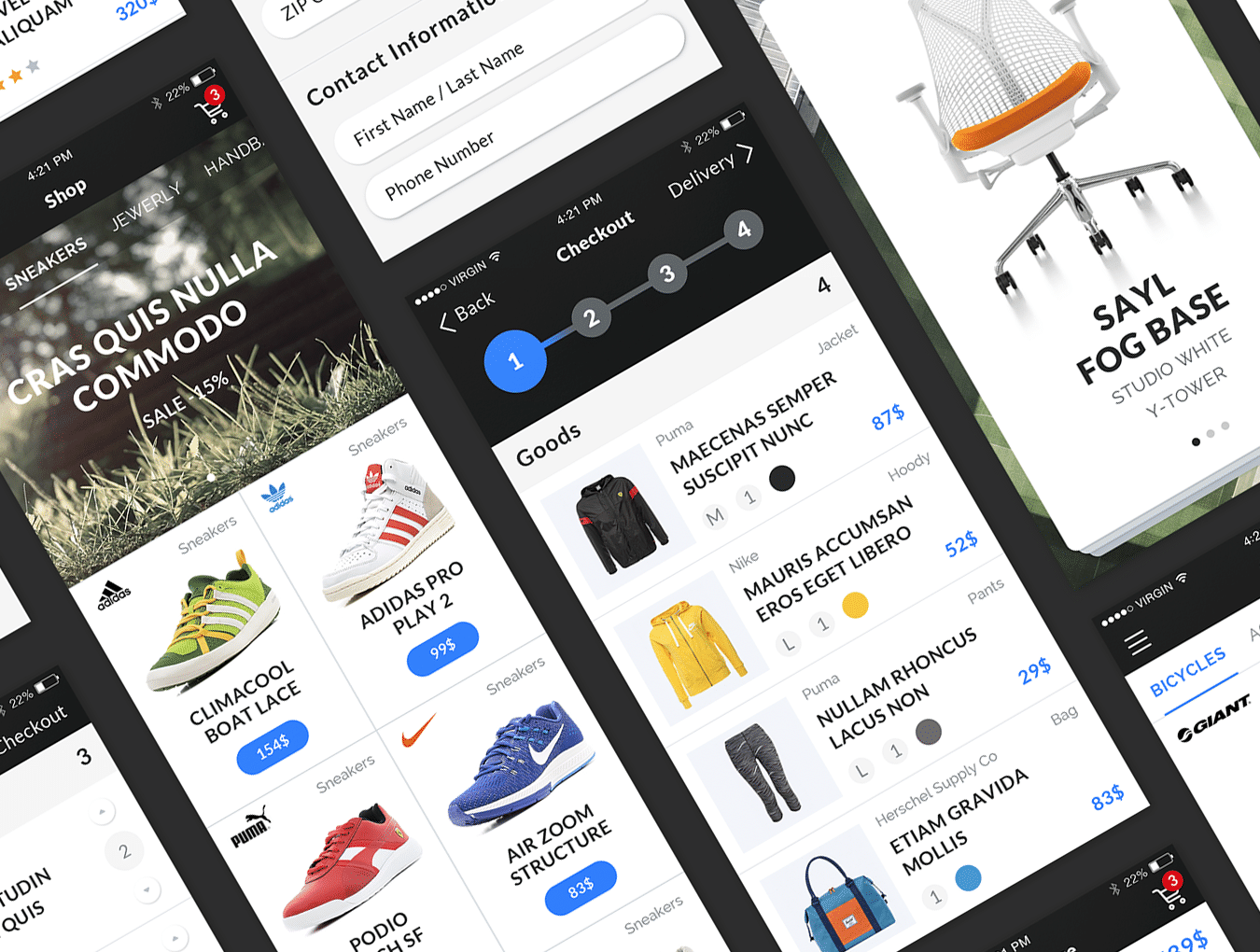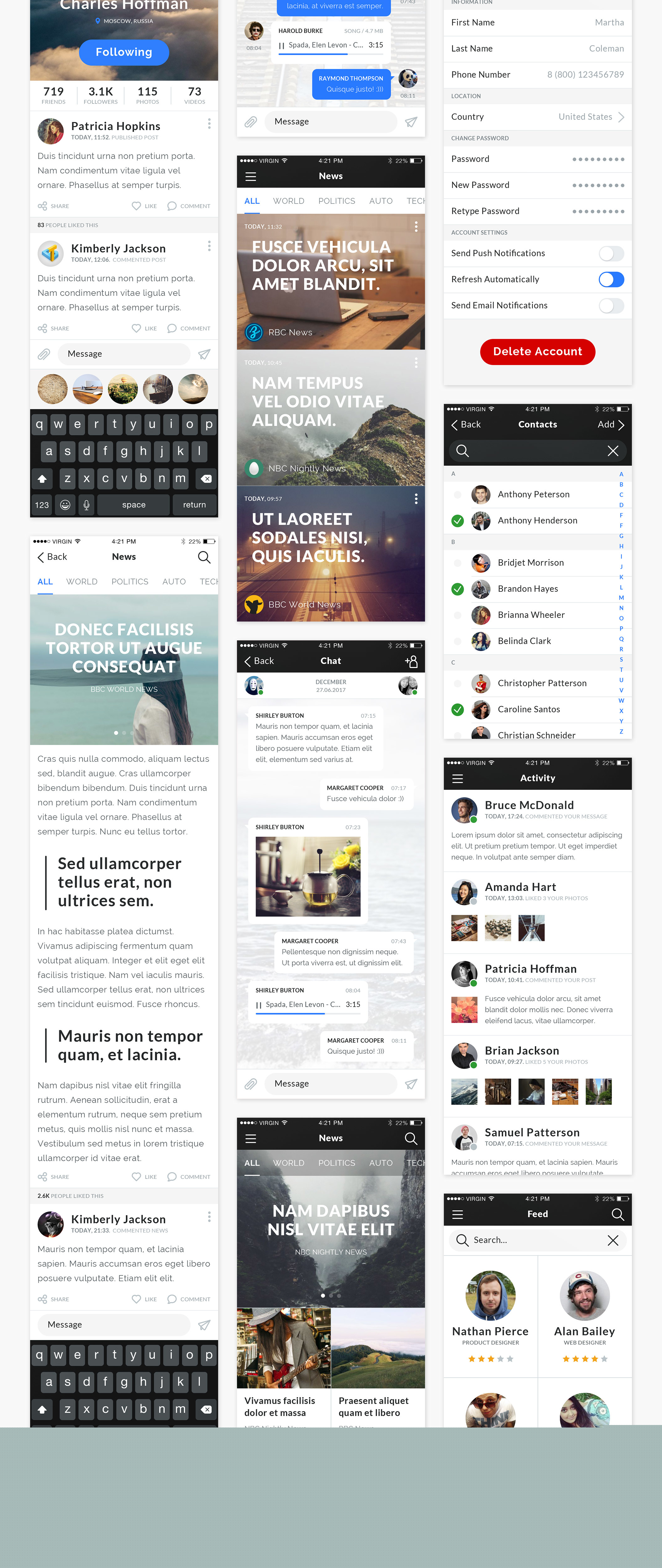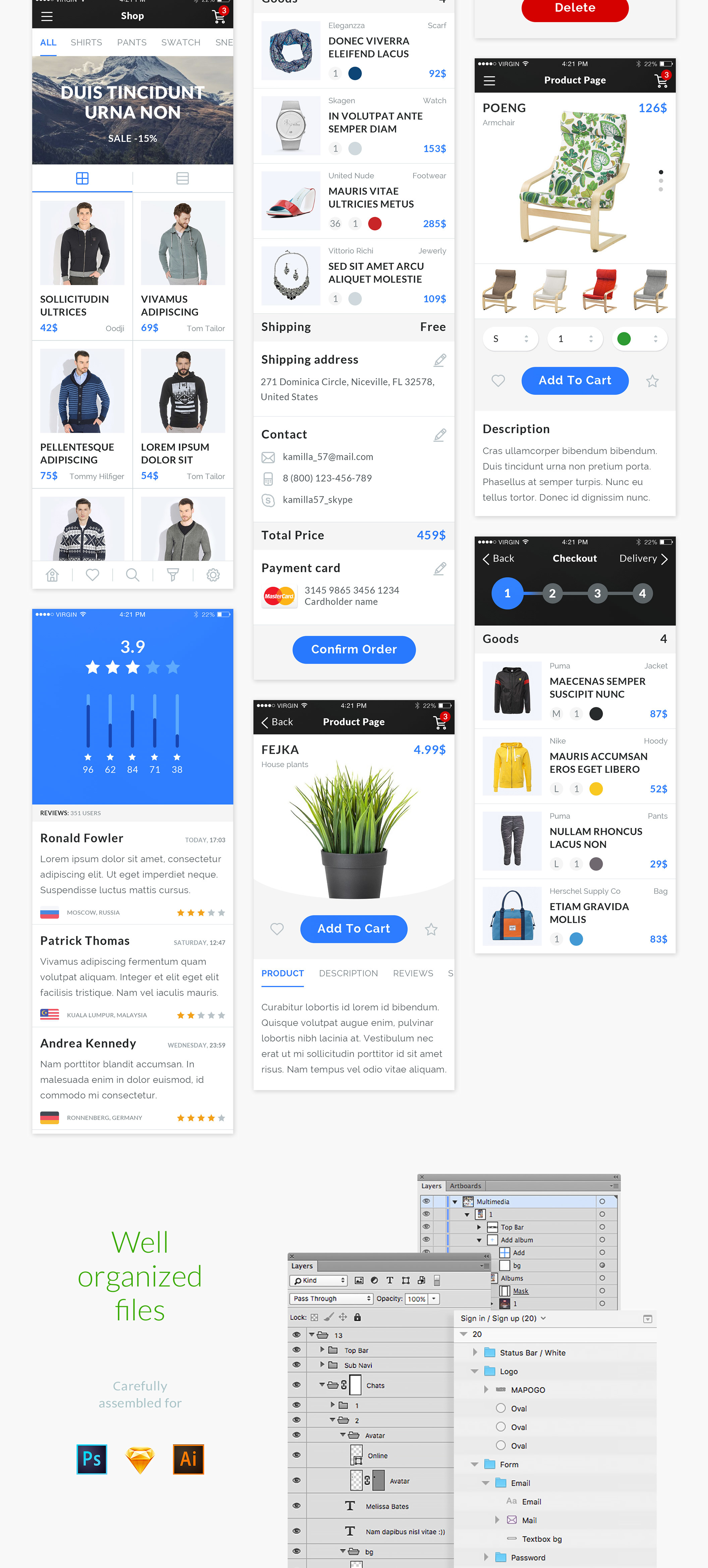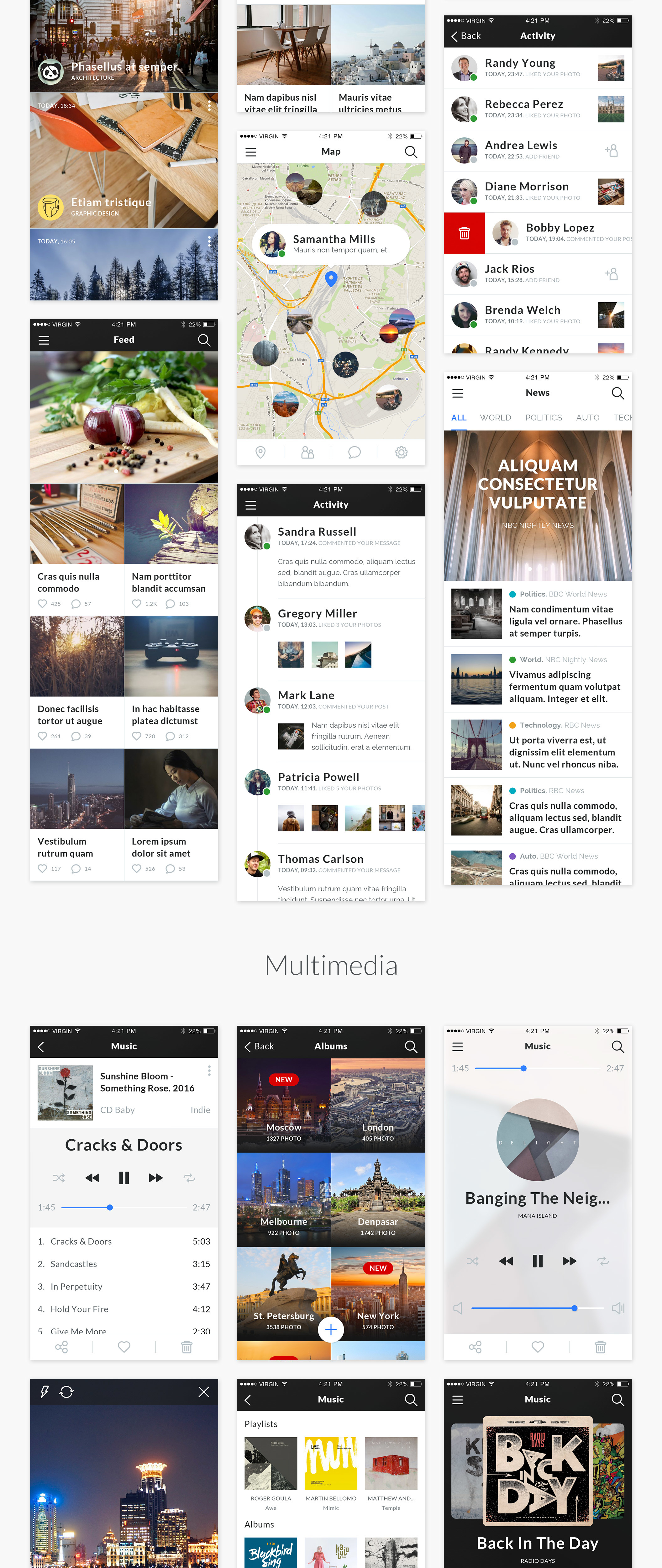 Mapogo是一个熟练的集合,充满了不错的用户界面元素。这是一个设计师和移动应用程序开发人员的完美UI套件。所有的元素都组织成120 +高品质的屏幕。所有屏幕分为9类;登录,注册,演练,导航,社交,新闻,配置文件,多媒体,电子商务,精心组装在素描,Illustrator和Photoshop中。