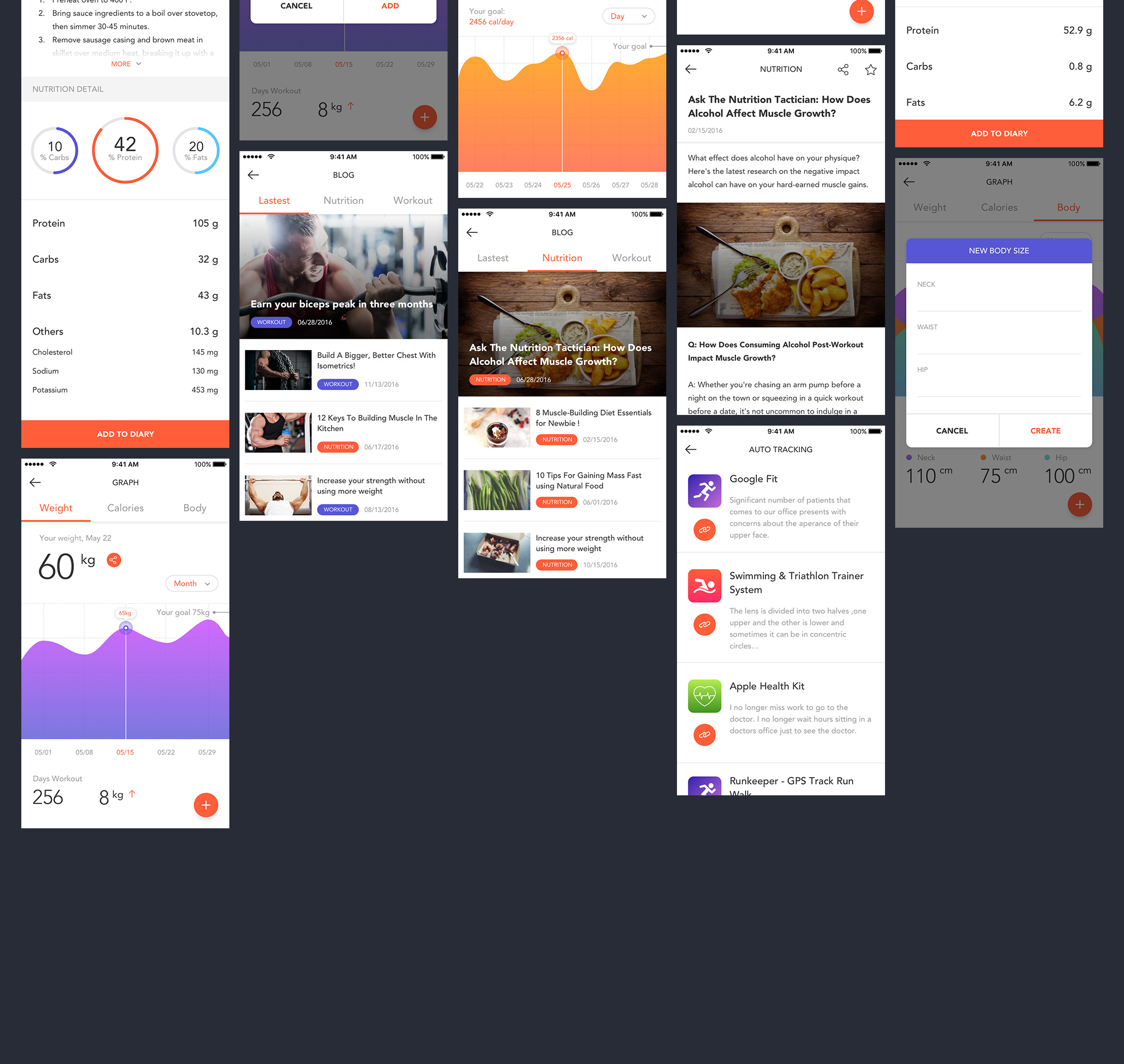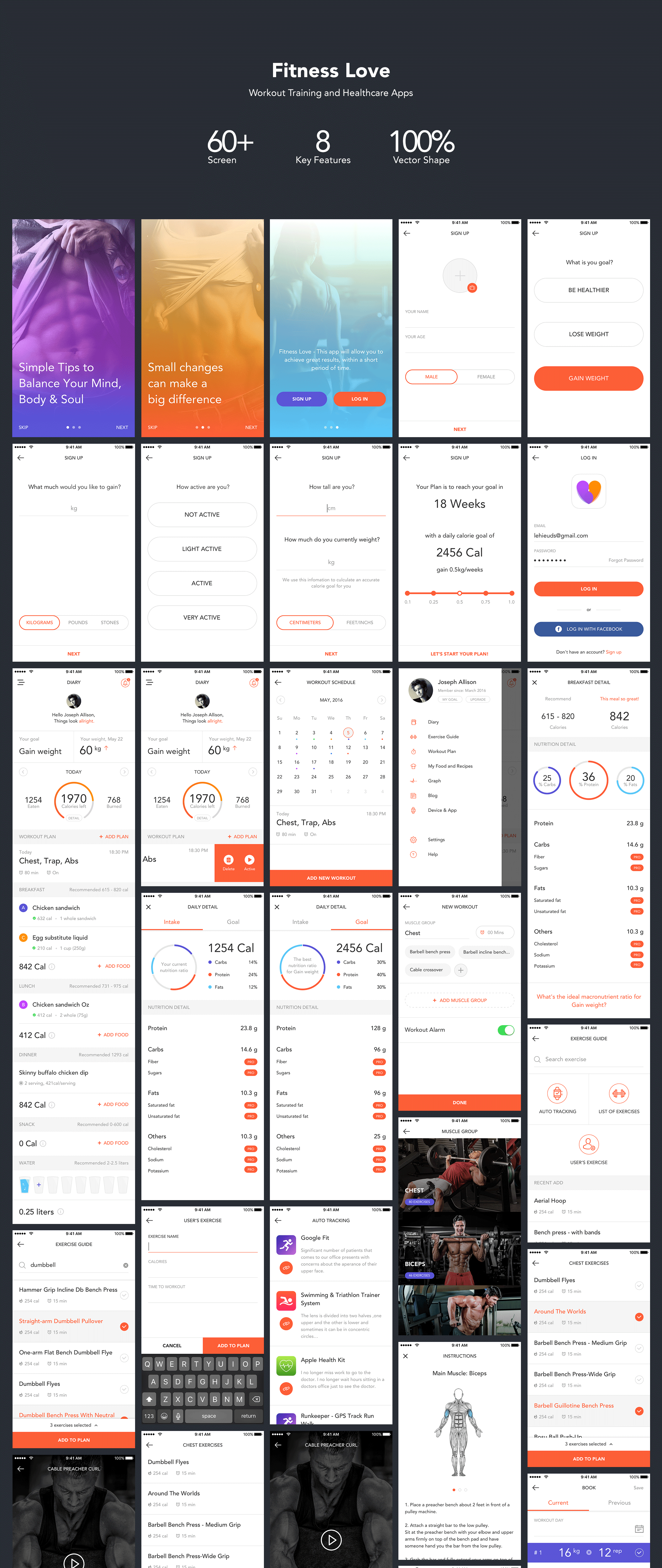 现代60+屏幕移动UI工具包,健身爱
