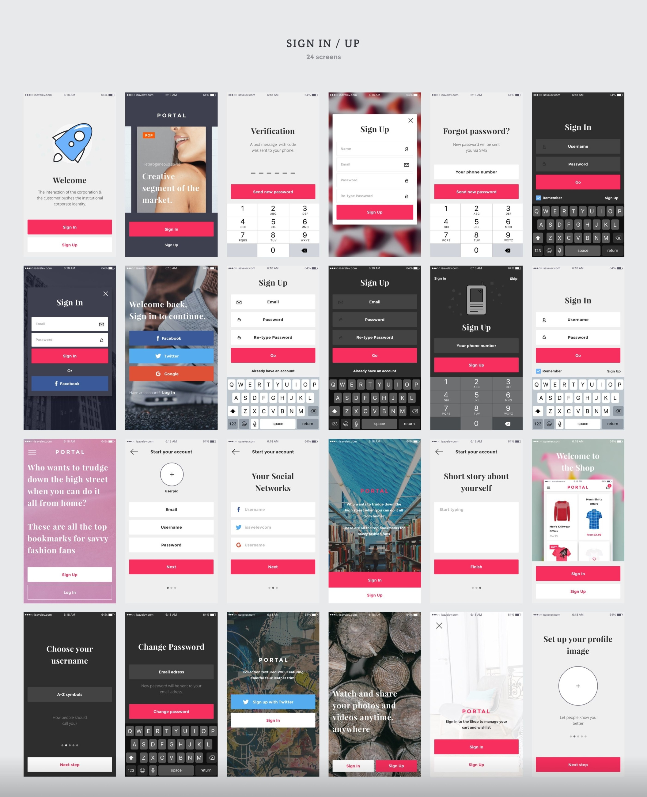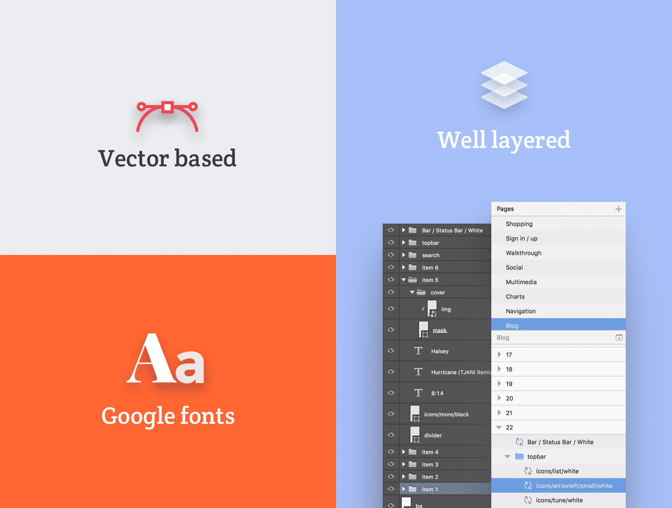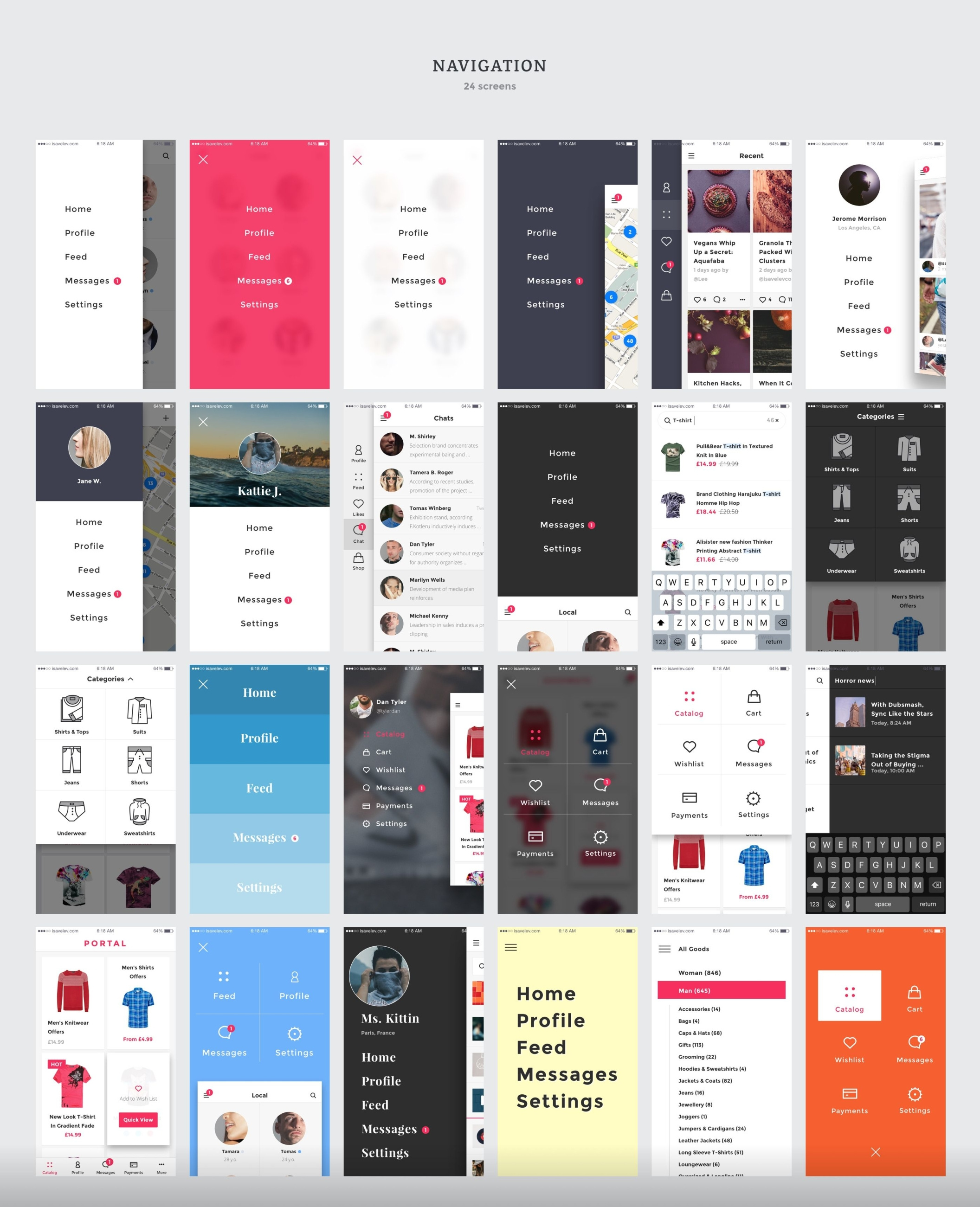 创建您的应用程序设计,原型或获得启发与超过200个iOS屏幕和数百个用户界面元素,组织成8个流行的内容类别;购物,登录/注册,演练,社交,多媒体,图表,导航和博客。