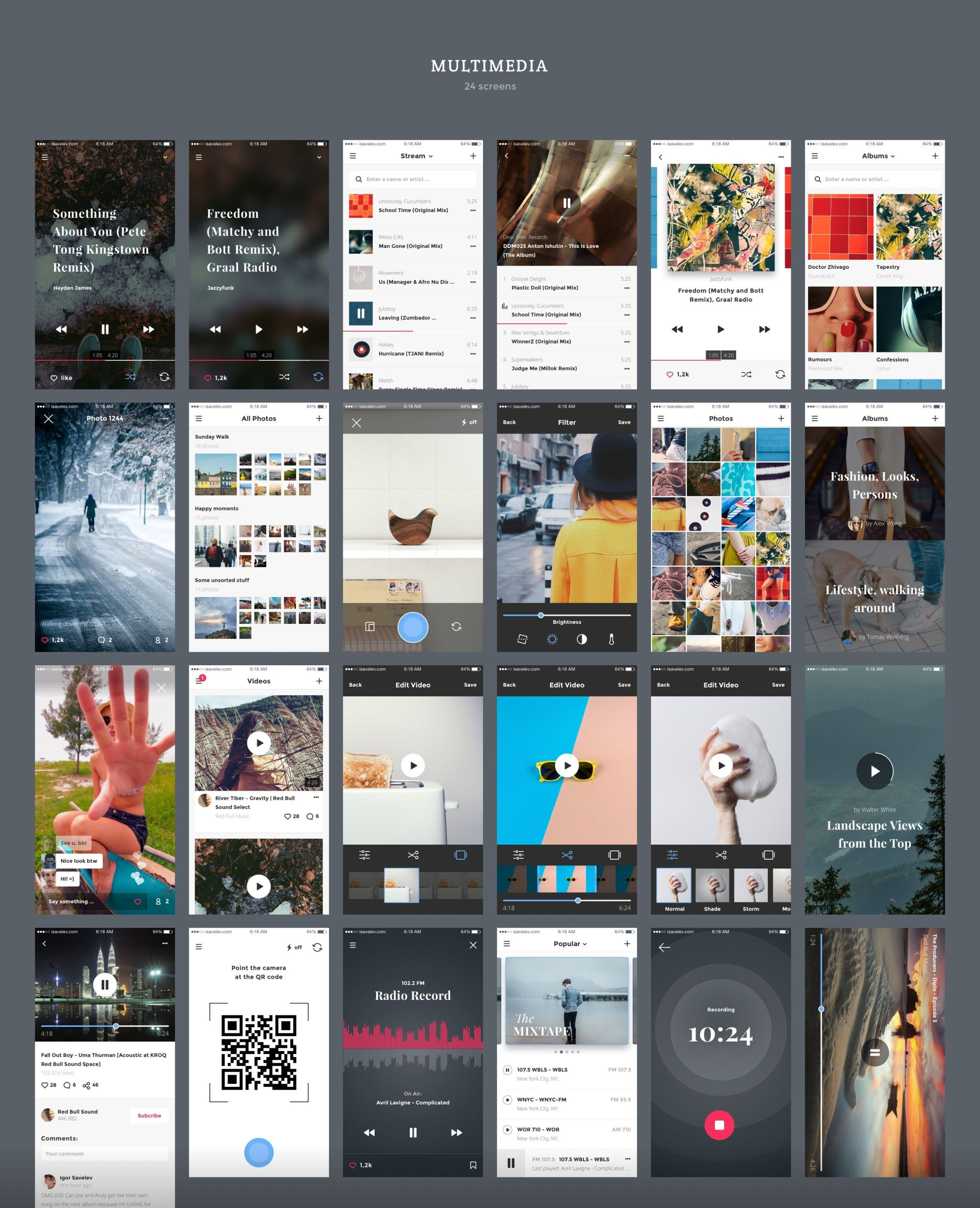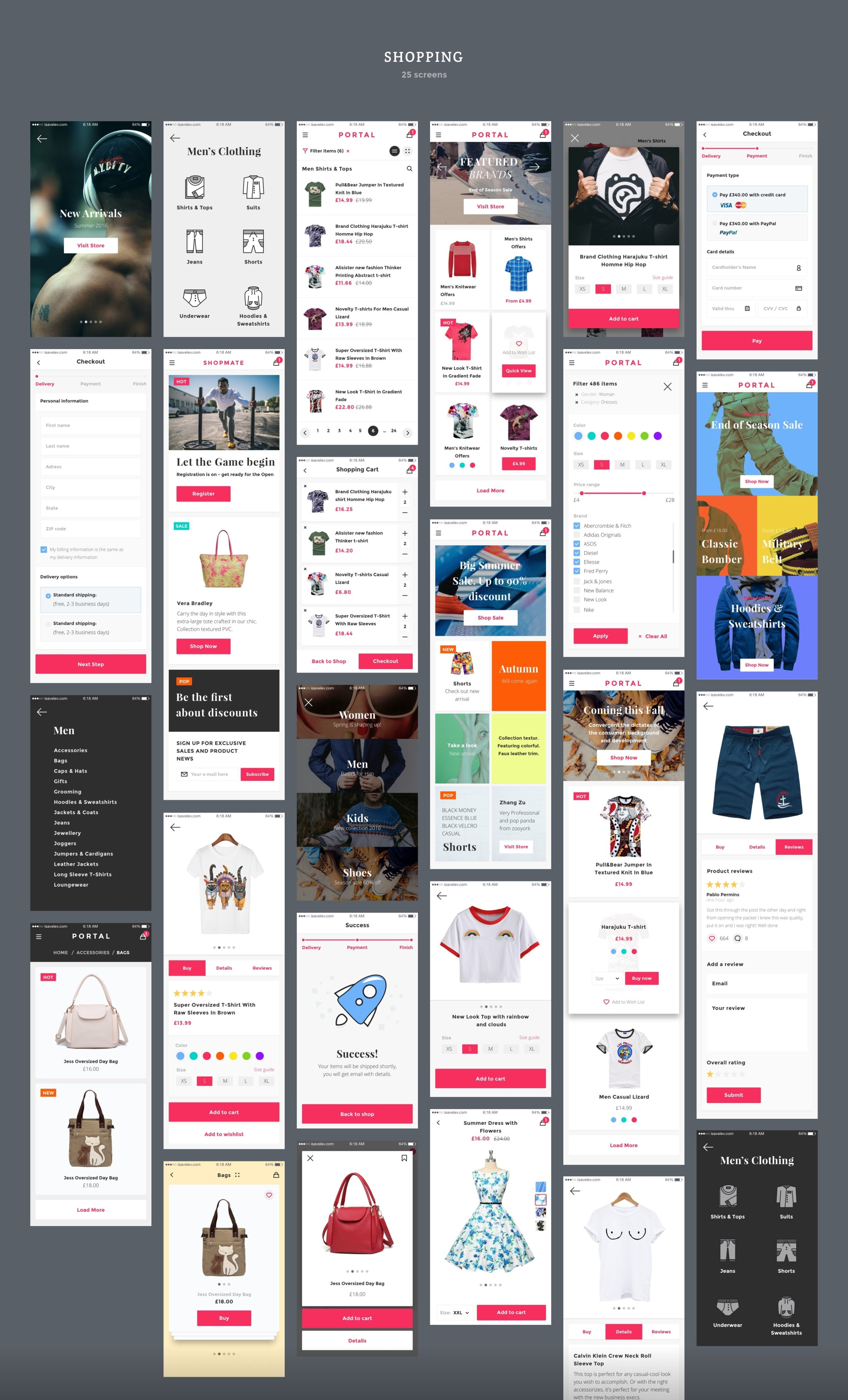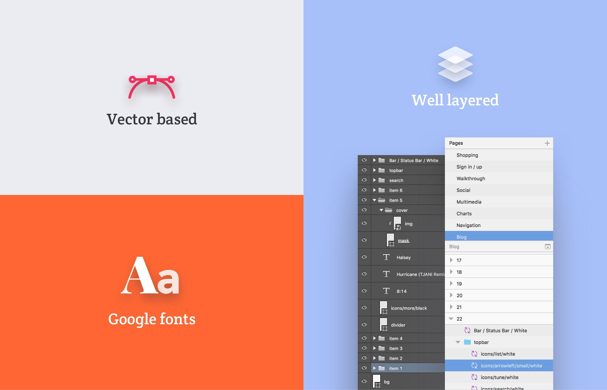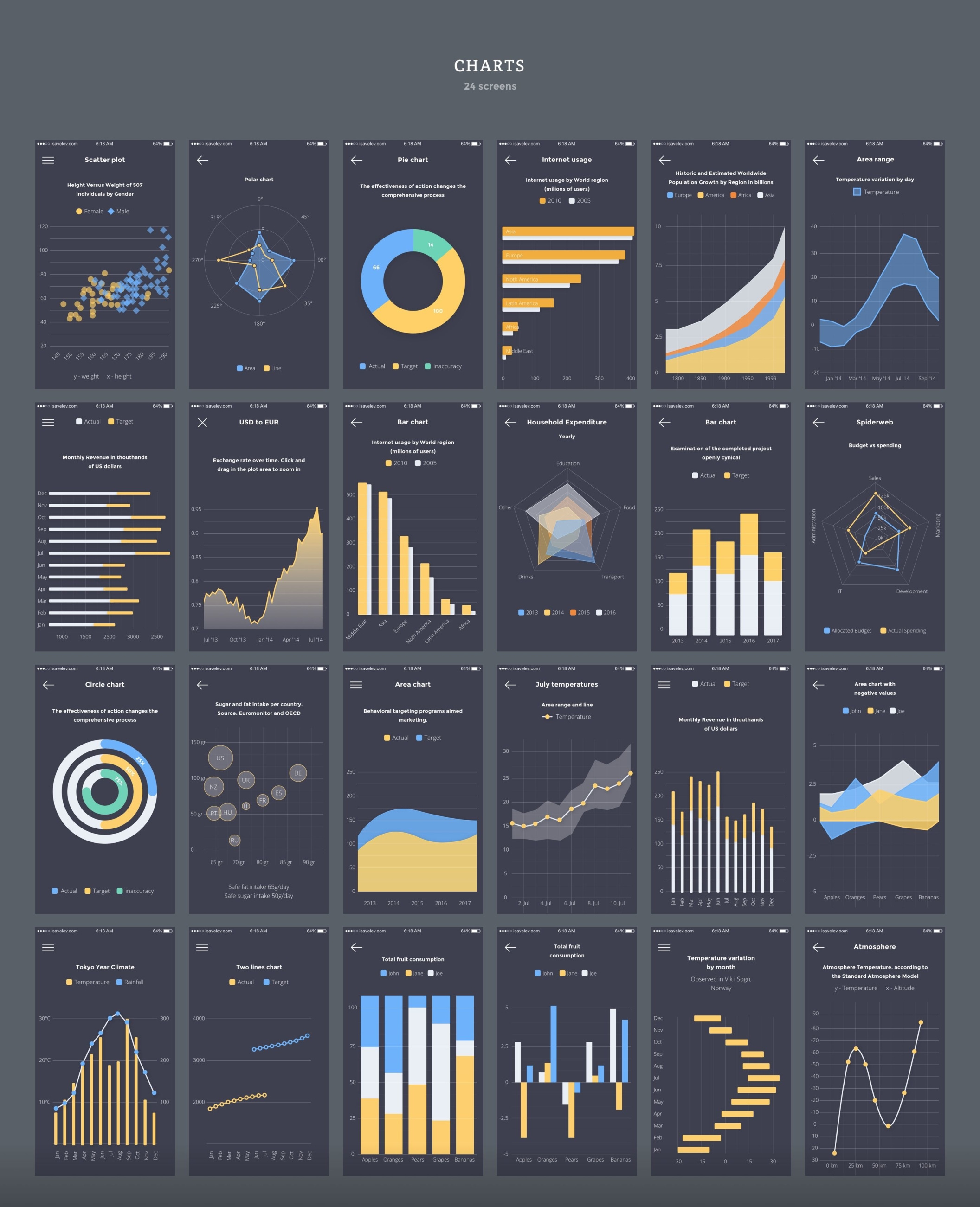 创建您的应用程序设计,原型或获得启发与超过200个iOS屏幕和数百个用户界面元素,组织成8个流行的内容类别;购物,登录/注册,演练,社交,多媒体,图表,导航和博客。