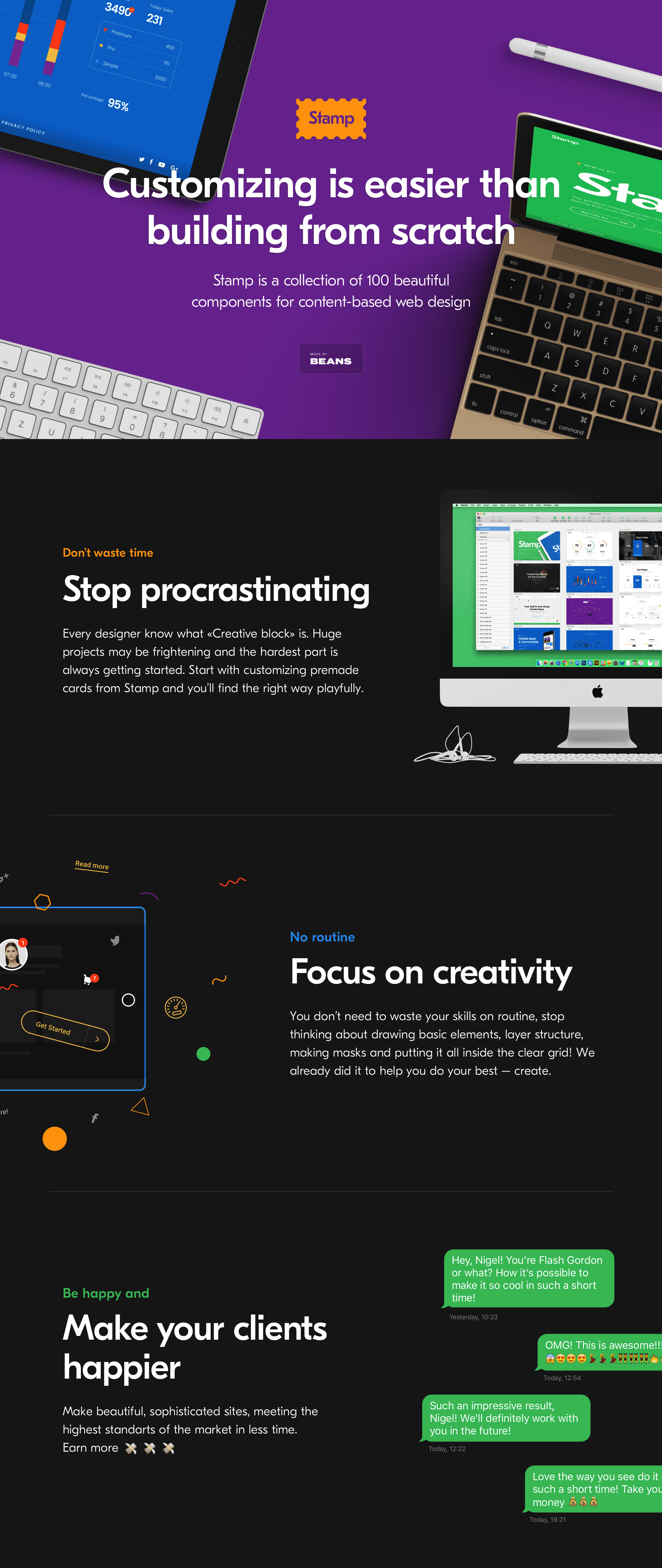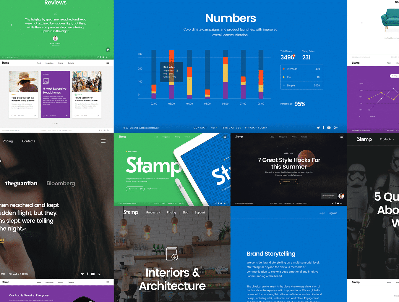 邮票是多才多艺的,75个用户界面卡片,由数百个元素组成,以最好的方式帮助您呈现客户的想法。卡片分为9个内容类别,并补充了各种页眉,页脚和标题,并在Sketch和Photoshop源文件中精心组合。文件可以使用,只要你想 - 改变文字样式,颜色,添加或替换照片和图形。根据需要自定义布局模板。