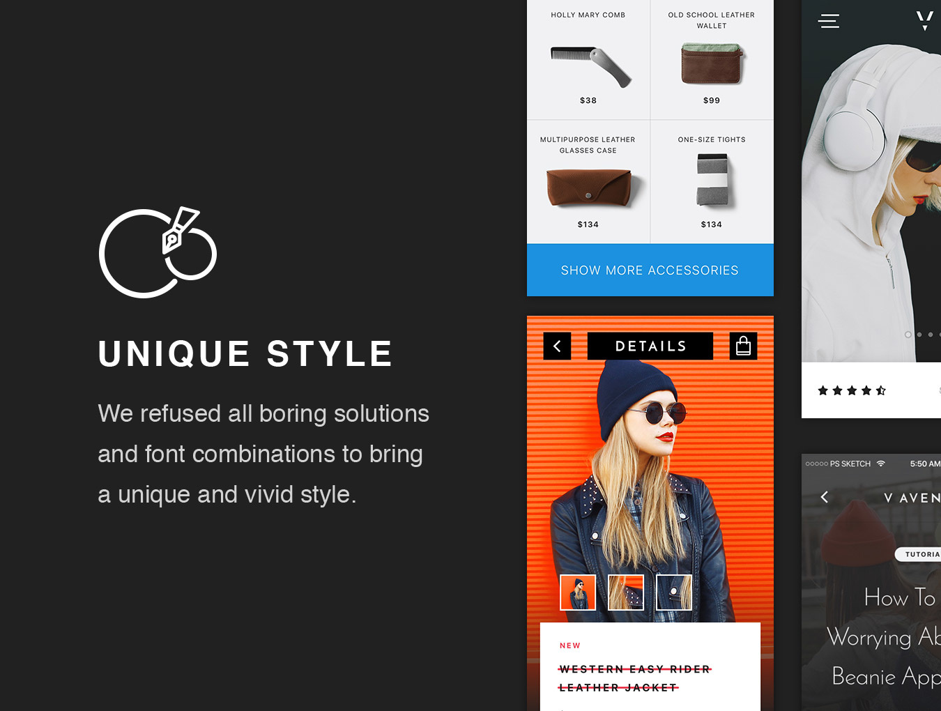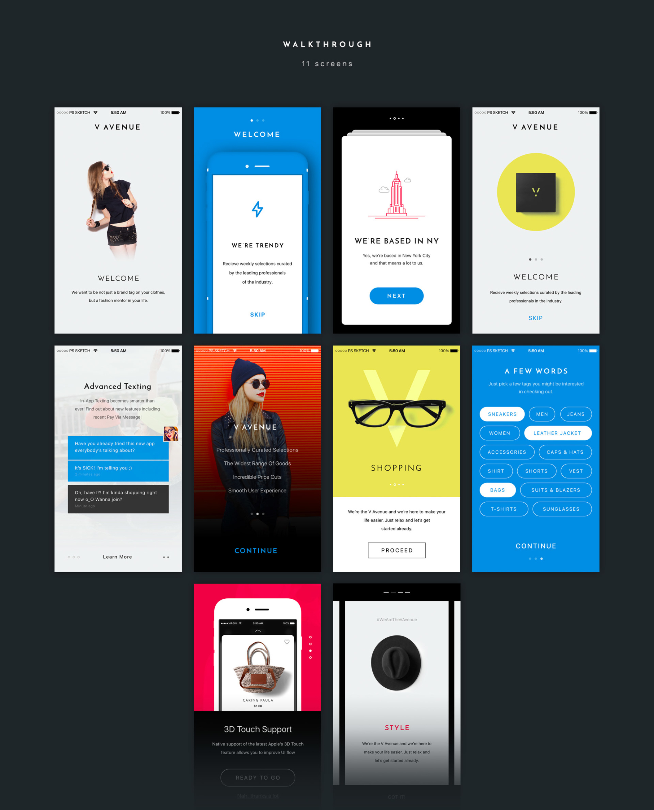 我们很高兴向您介绍V Avenue,这是一款面向Sketch&Photoshop的高级移动UI套件,专注于电子商务。这100个最高质量的移动应用程序模板,超清晰锐利的外观可以成为您最有用的移动应用程序设计工具。我们放弃了所有无聊的解决方案和字体组合选择,以开发独特而生动的风格,今天我们很乐意为您提供我们努力的结果。