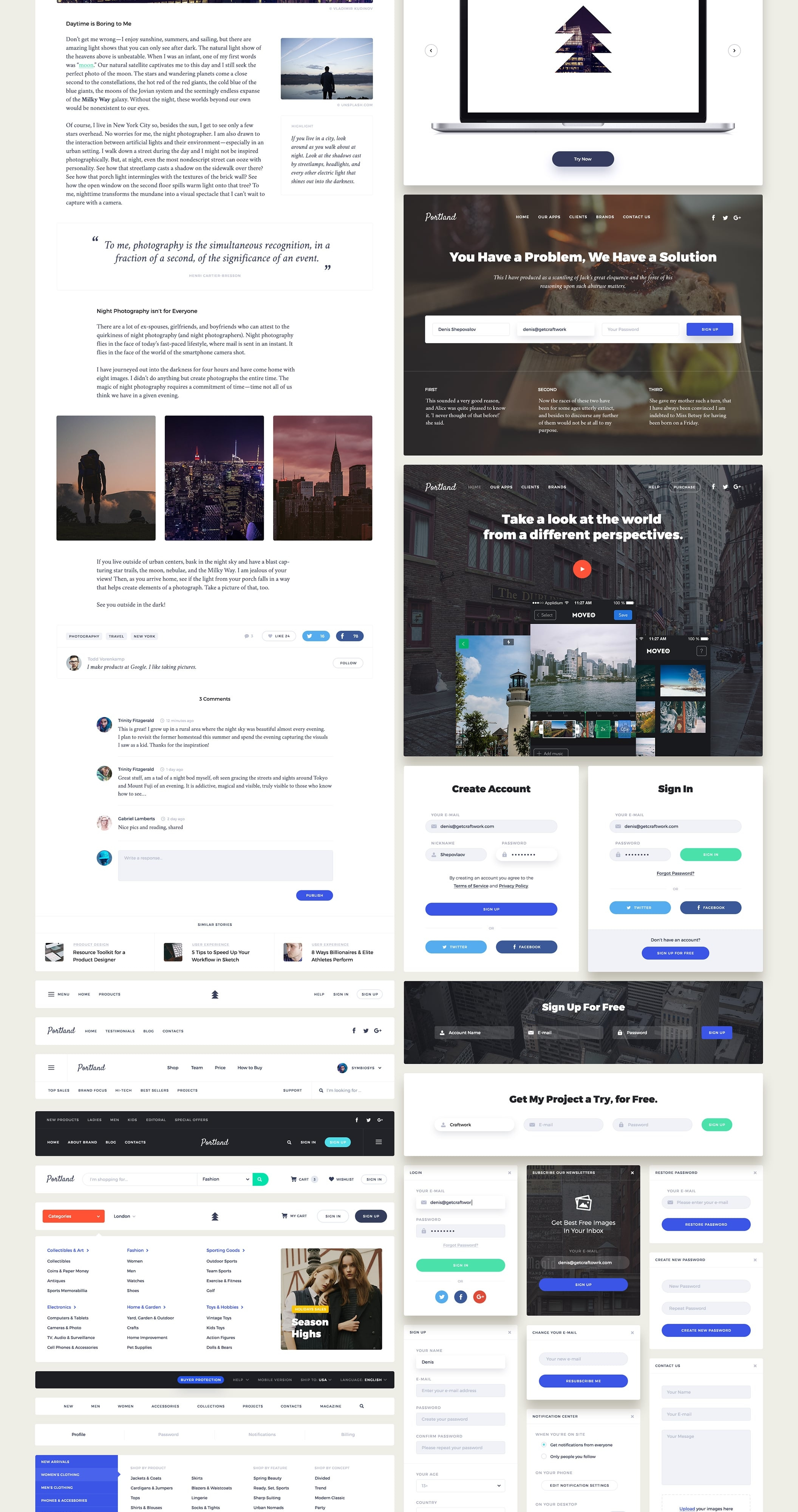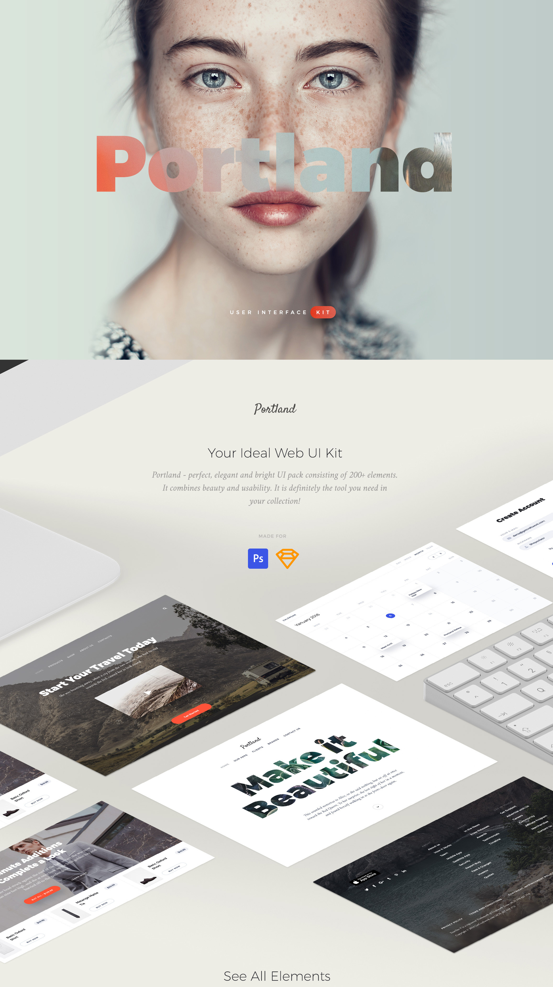 波特兰 - 完美,优雅和明亮的UI工具包为Photoshop和素描创建。结合美观和实用性,绝对是您收藏中需要的工具!这个套件中的大量基本元素与其他许多UI套件不同。使用一个1170px宽的12列Bootstrap网格,这个UI套件是完全完美的,非常整洁,哦,这么干净。所有组件都是基于矢量的,完全兼容和可编辑的。图层是组织良好,仔细命名和分组。
