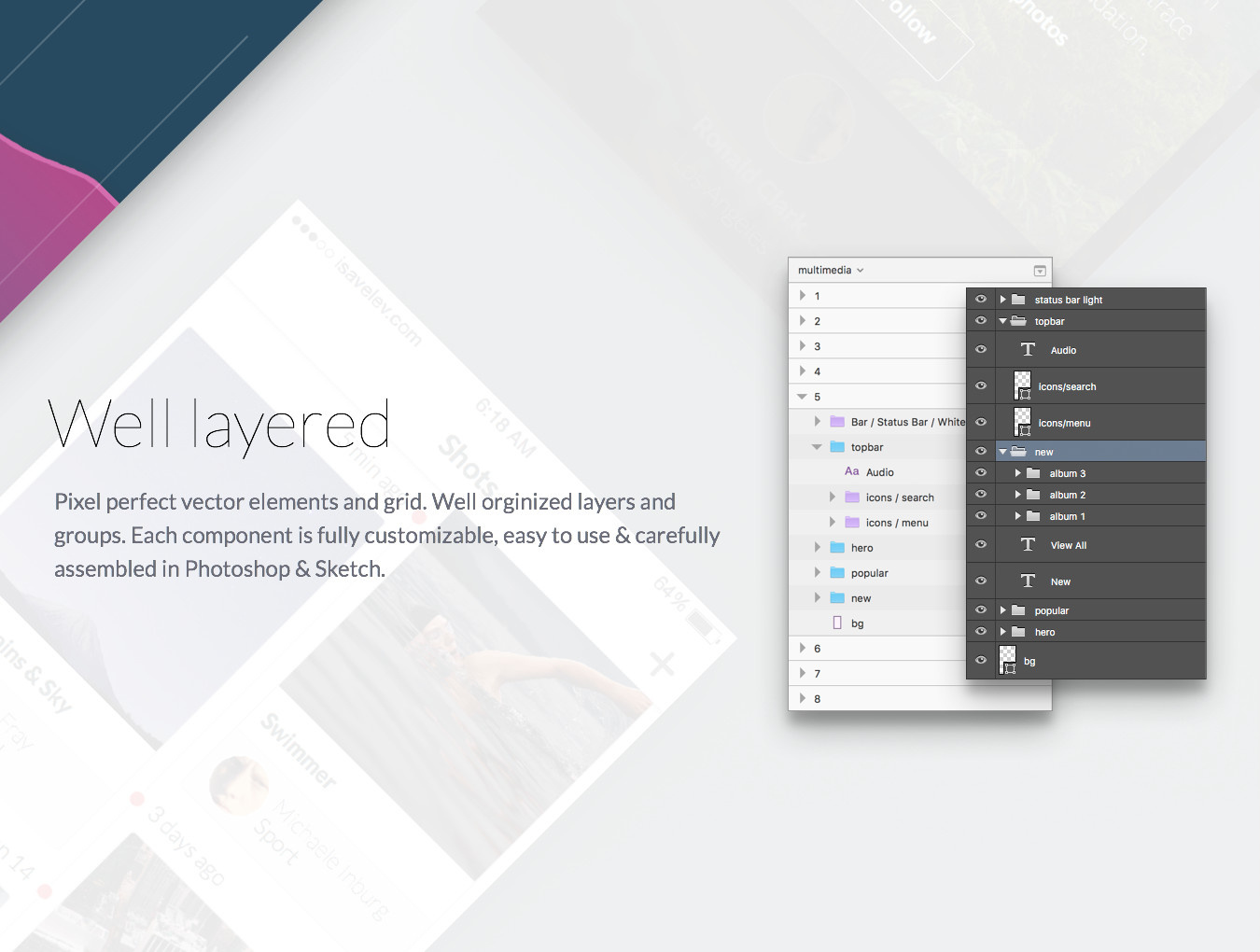 一个巨大的现代和有用的iOS用户界面工具包,精心组装为素描和Photoshop,使您的工作流程效率最高的生产力。此UI工具包中的每个组件都是完全可定制且易于使用的。像素完美的矢量元素,网格和组织良好的图层。这个庞大的用户界面元素只是让你的下一个应用程序弹出的东西!