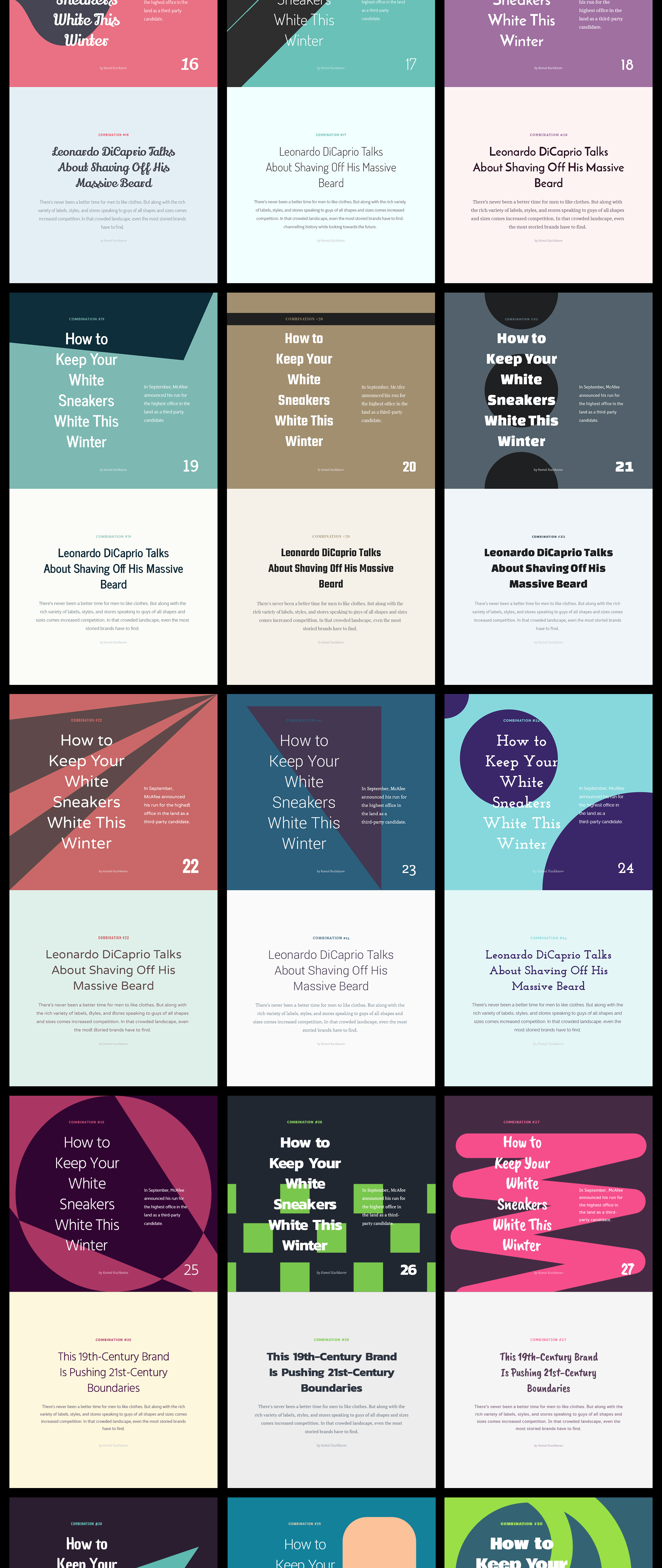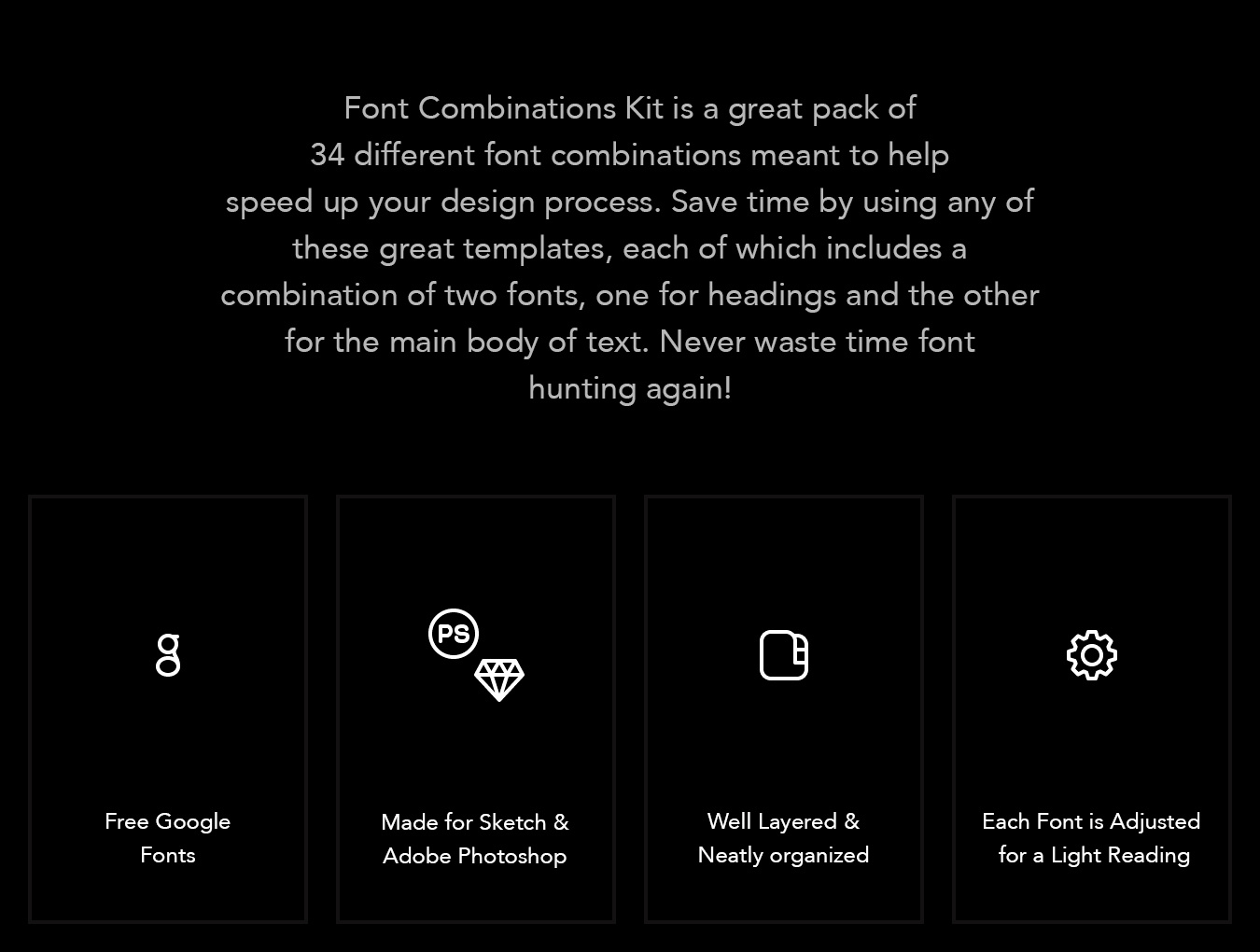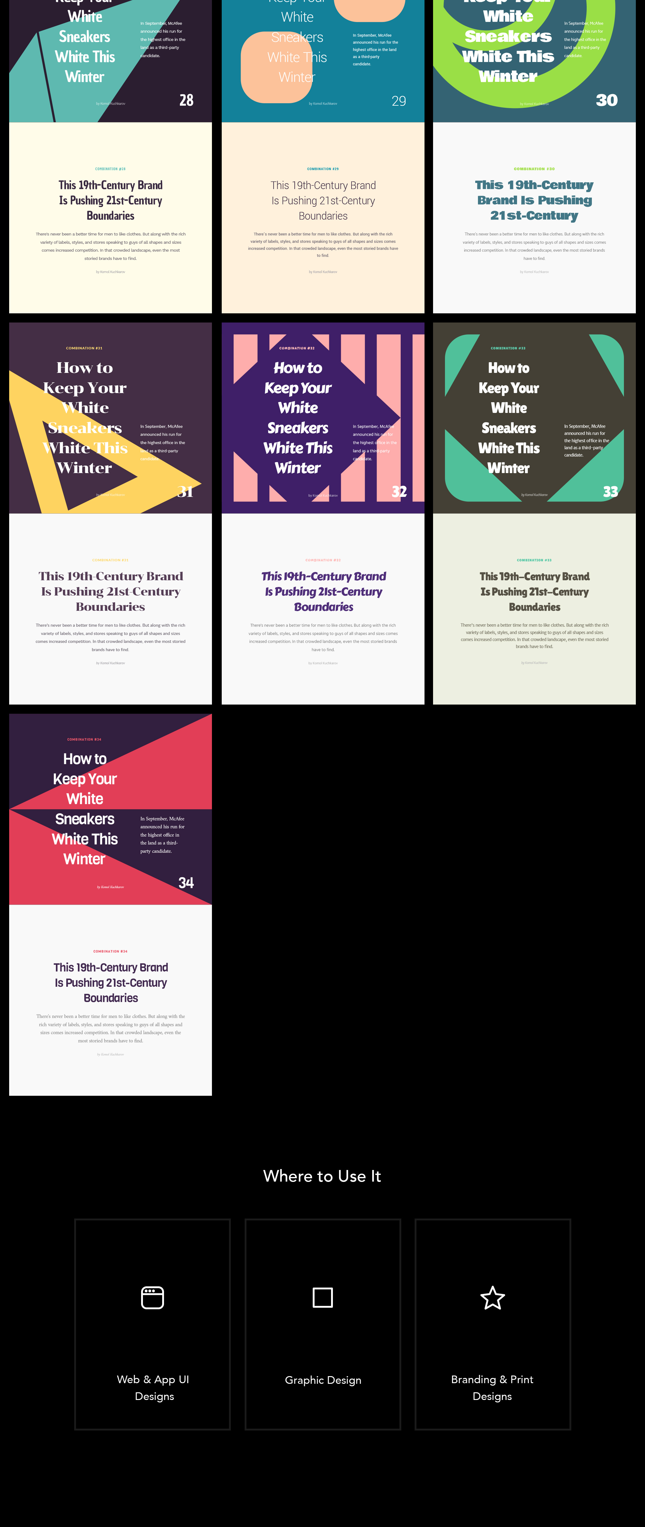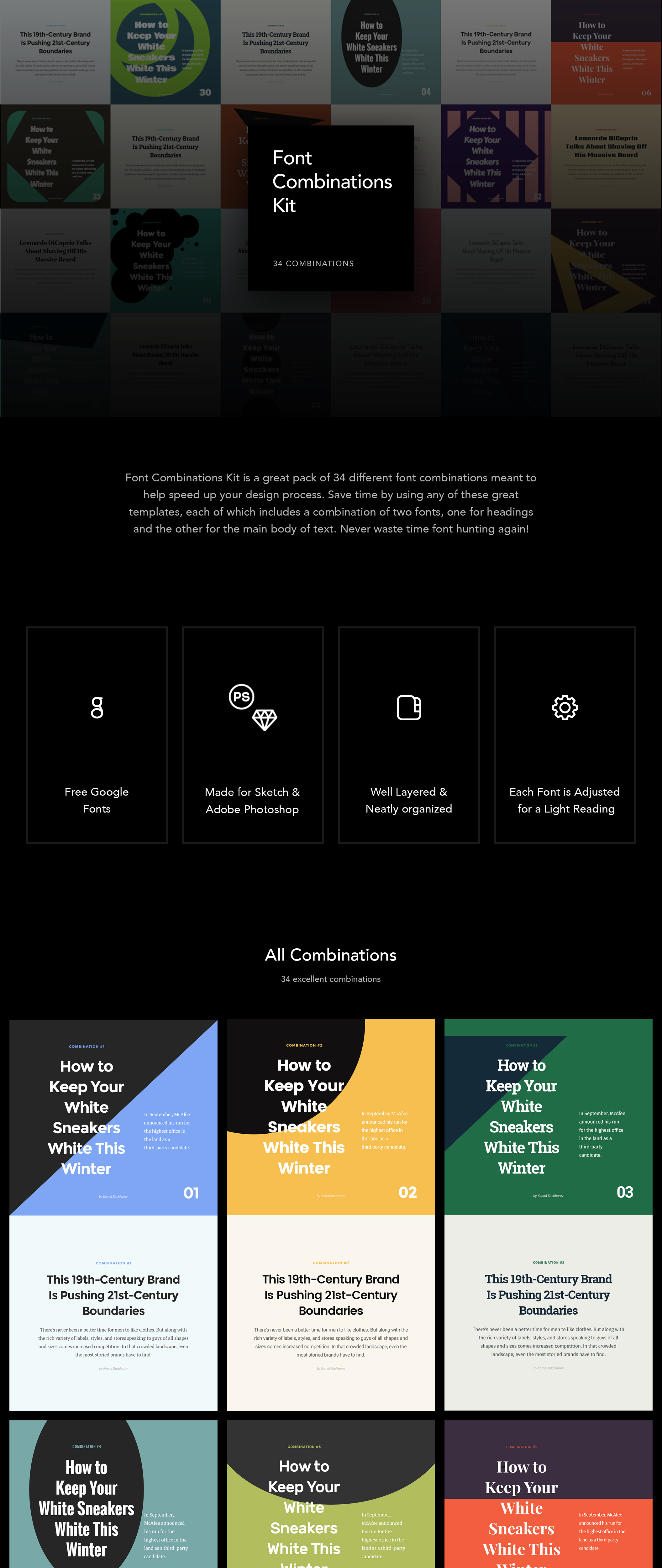 字体组合工具包是34种不同字体组合的精彩包装,旨在帮助加快您的设计过程。通过使用任何这些伟大的模板节省时间,每个模板包括两种字体的组合,一种用于标题,另一种用于文本主体。不要浪费时间再次寻找字体!