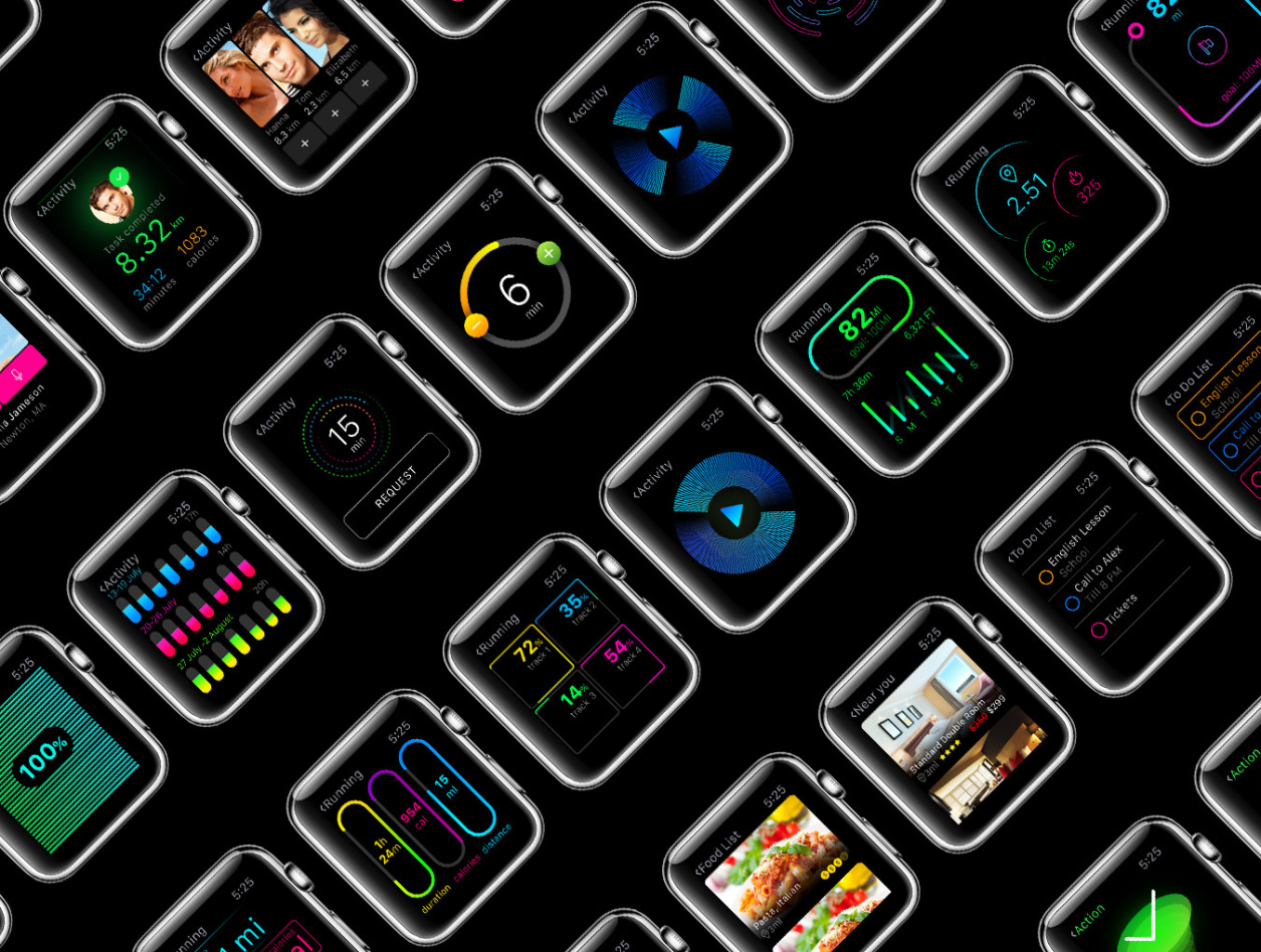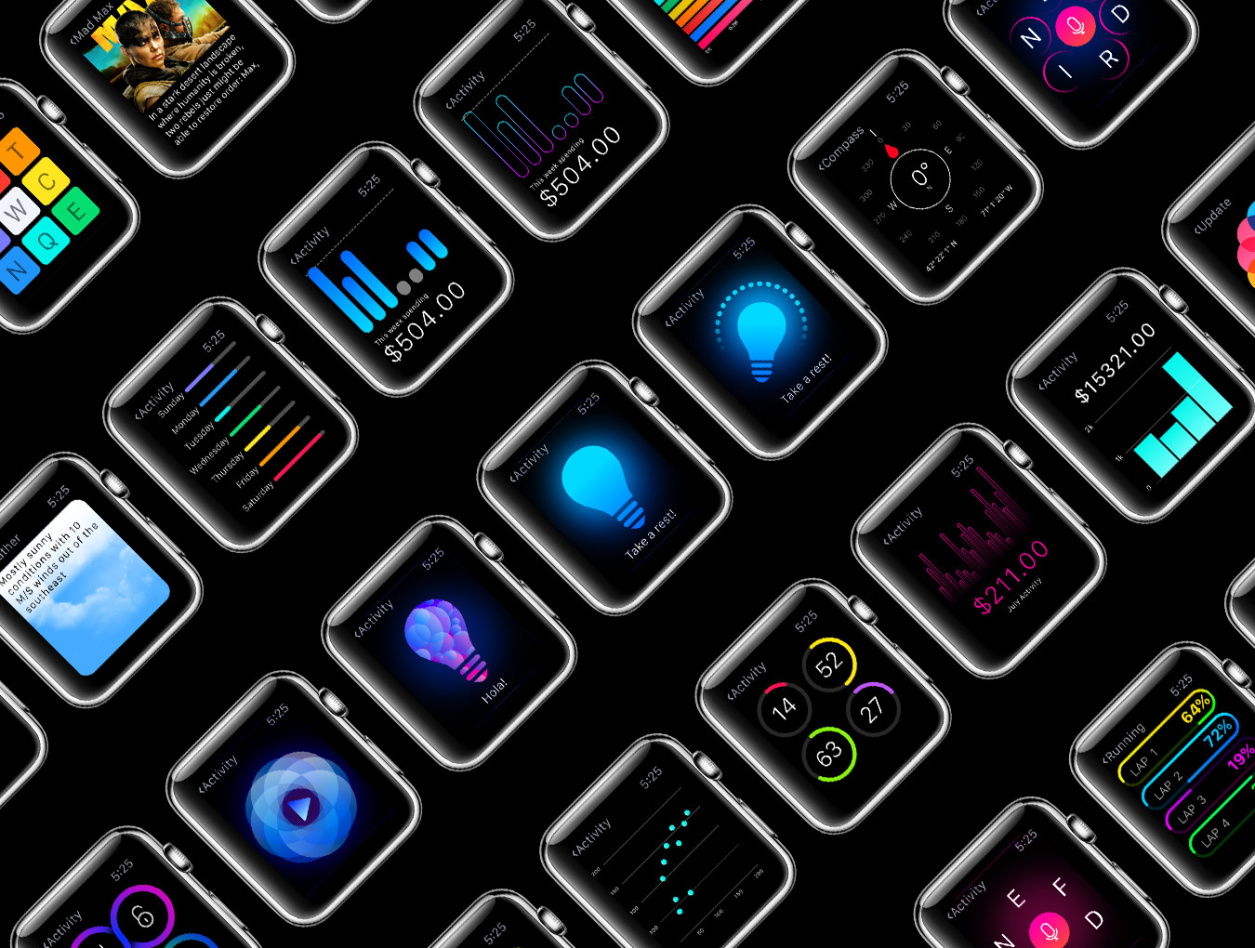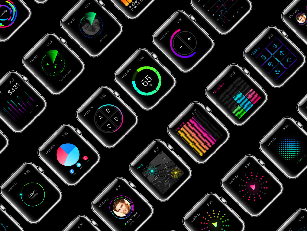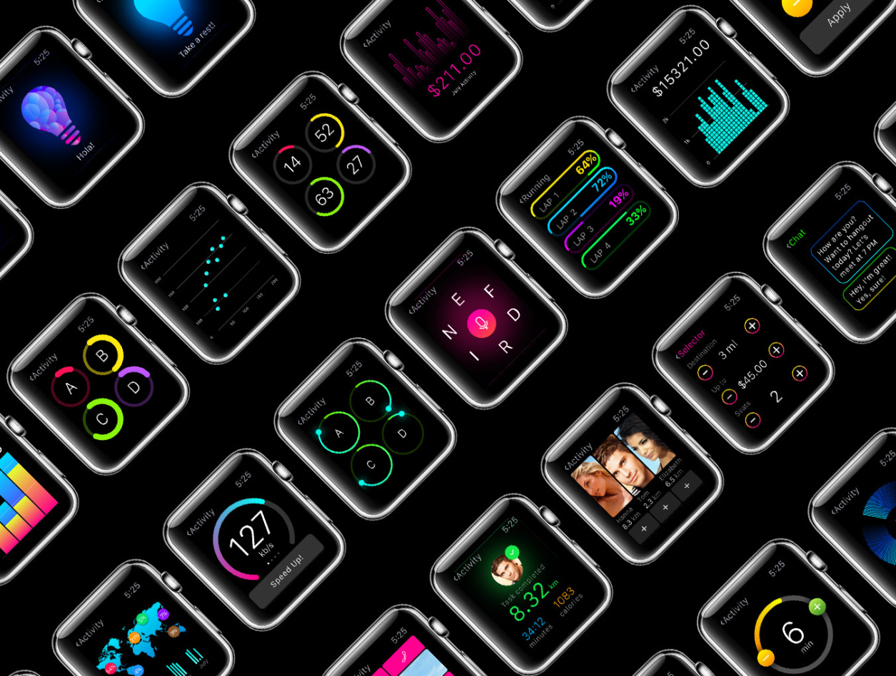 用于Apple Watch,W1 UI Kit的200多个屏幕UI工具包