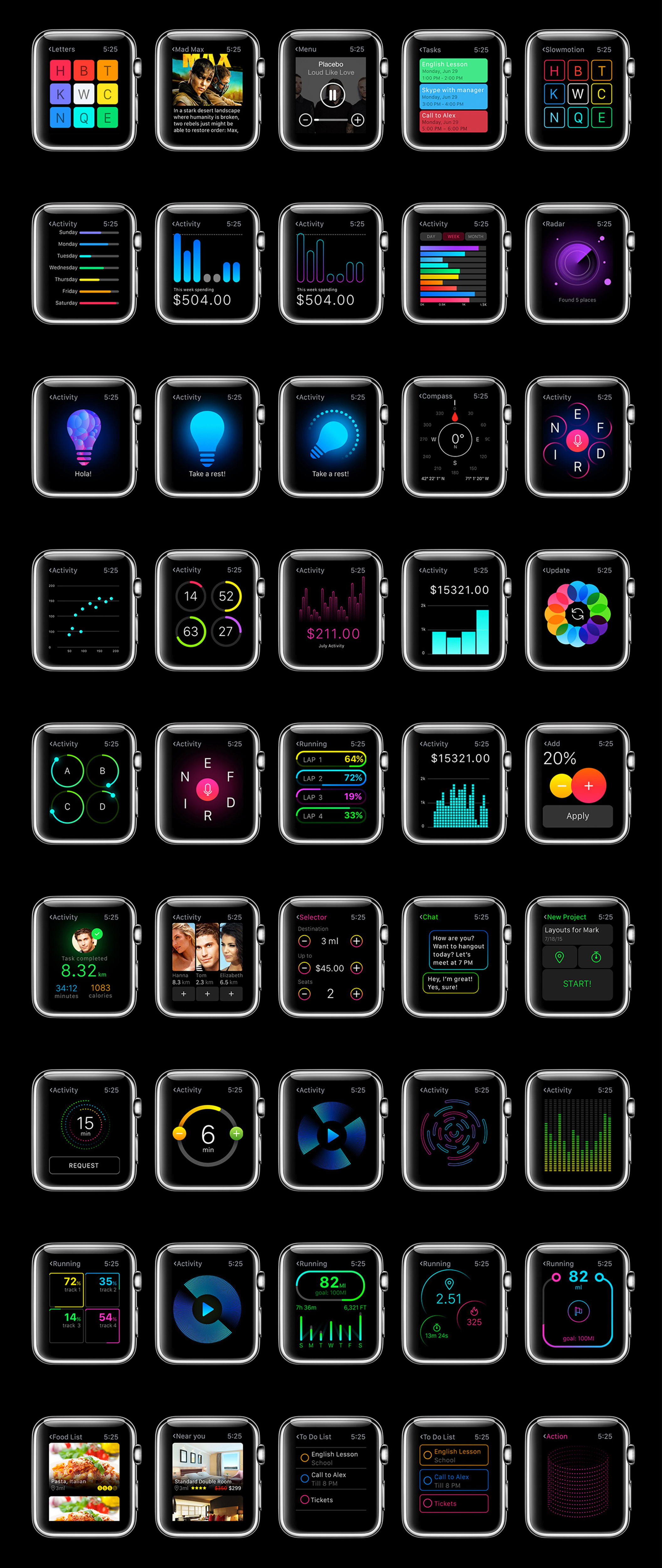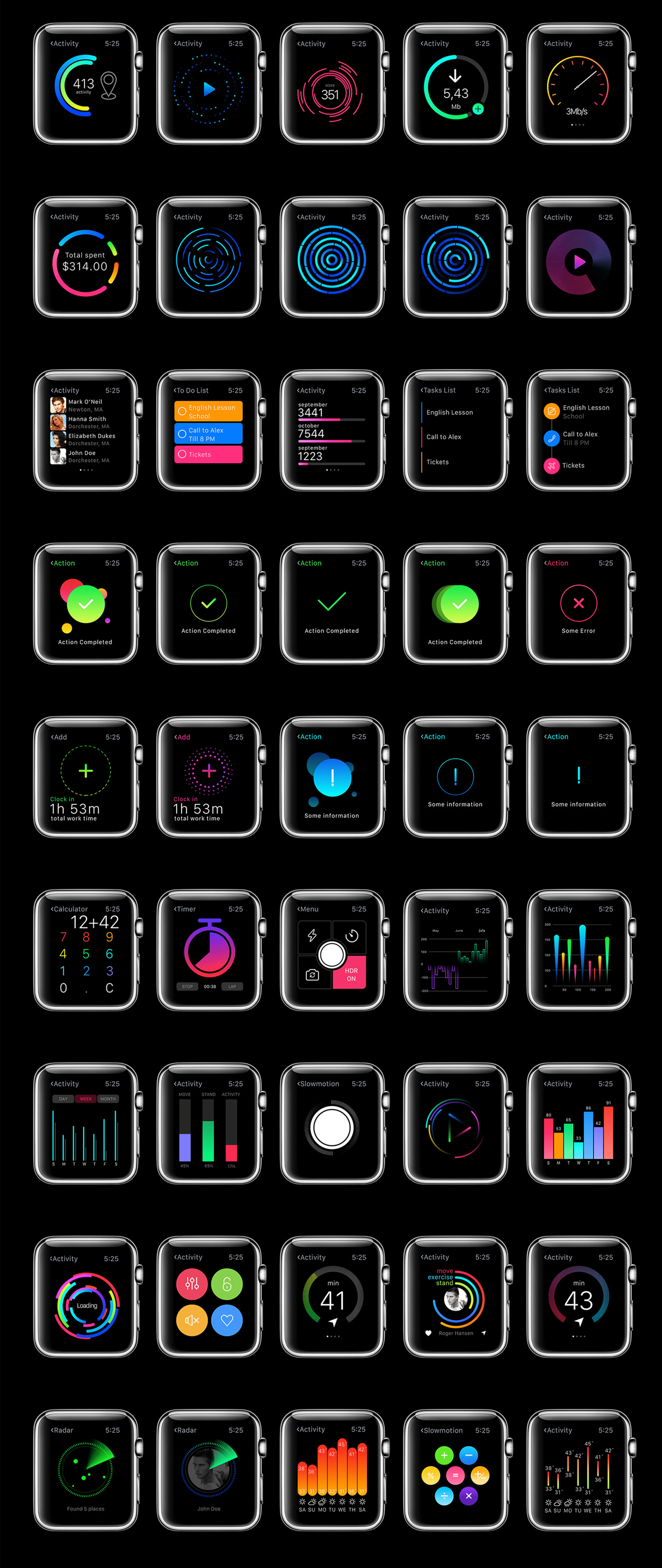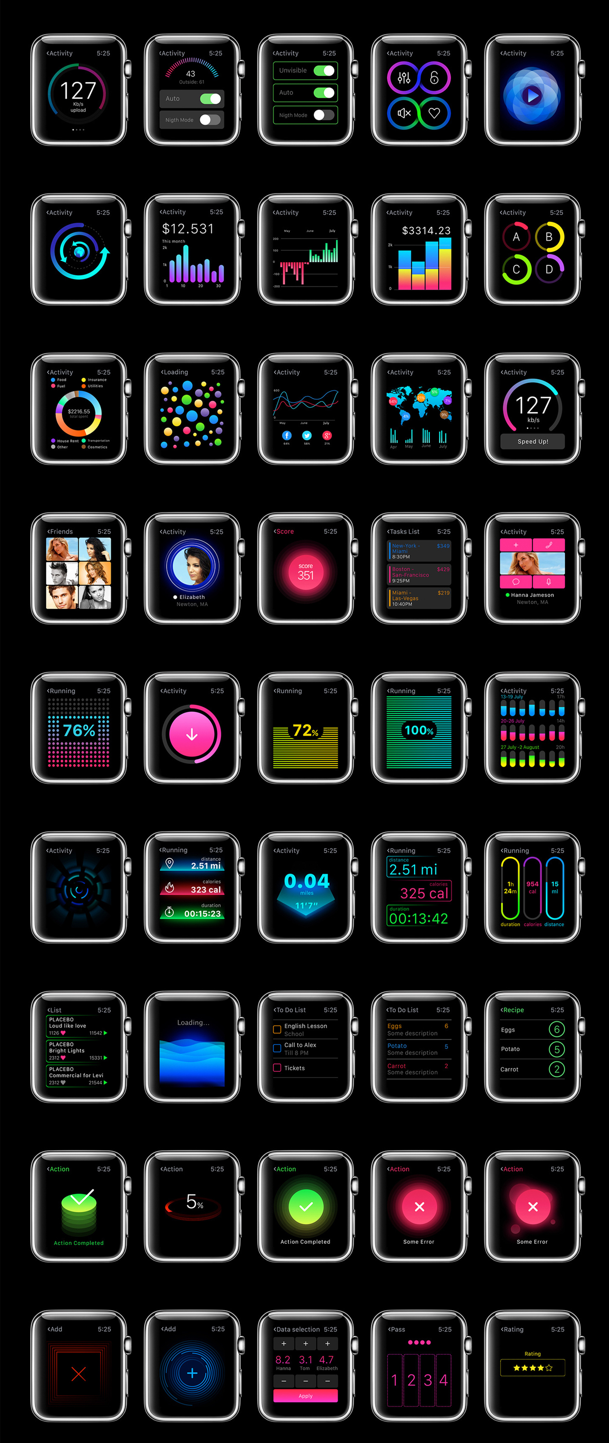 用于Apple Watch,W1 UI Kit的200多个屏幕UI工具包