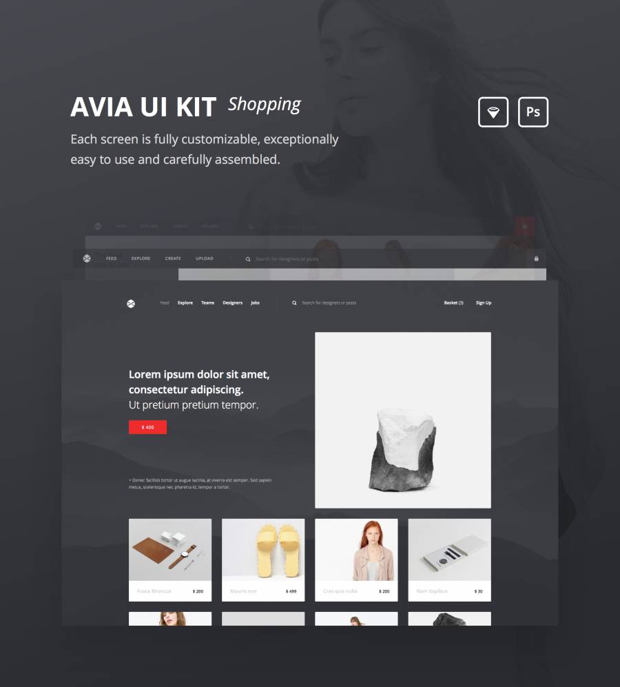 高度抛光的40模板UI套件,Avia UI套件:购物