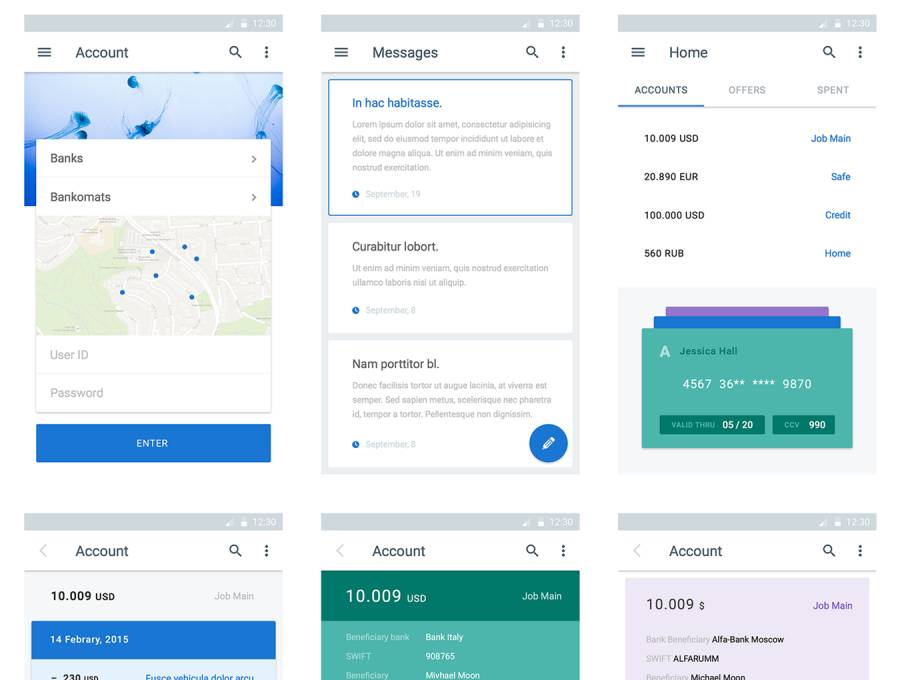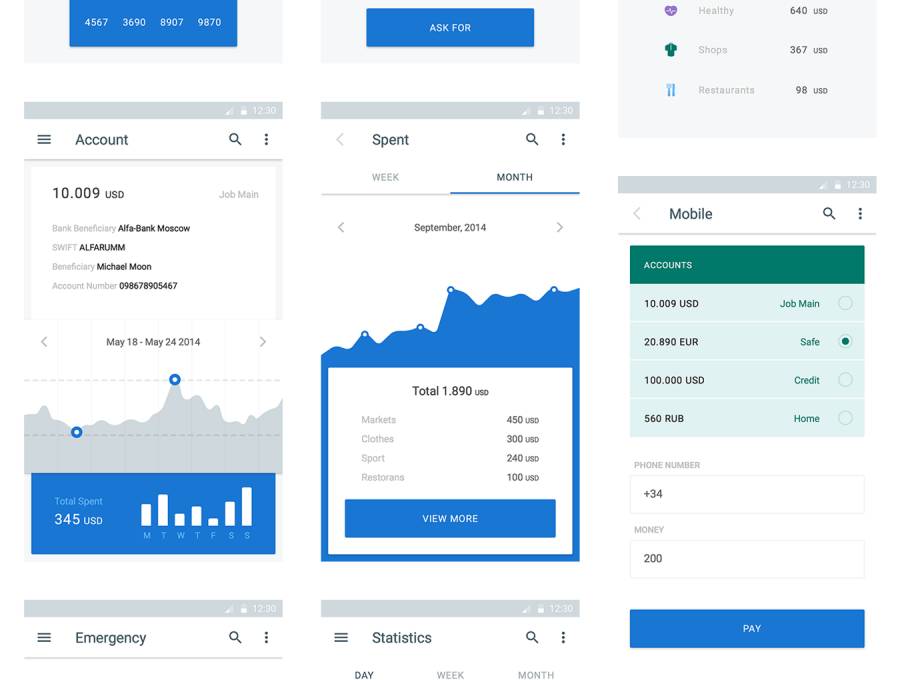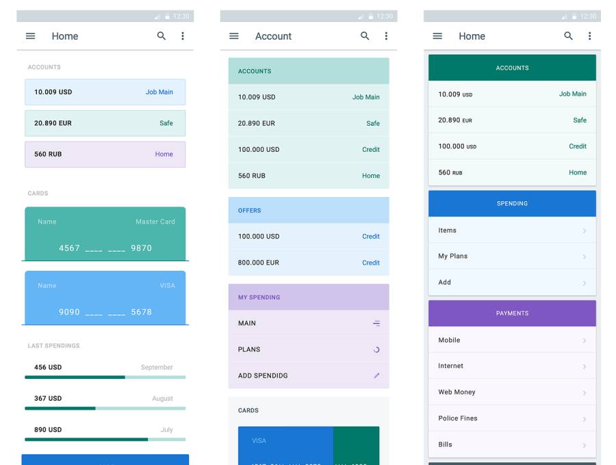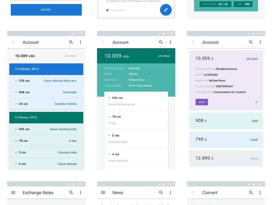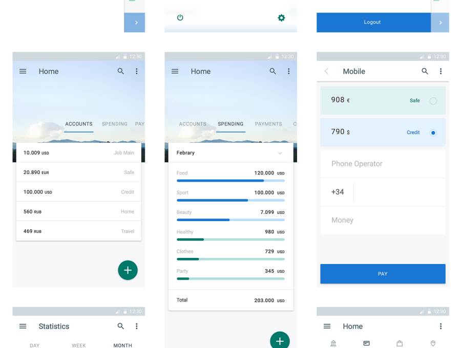 材料设计银行应用程序,材料UI工具包:金钱