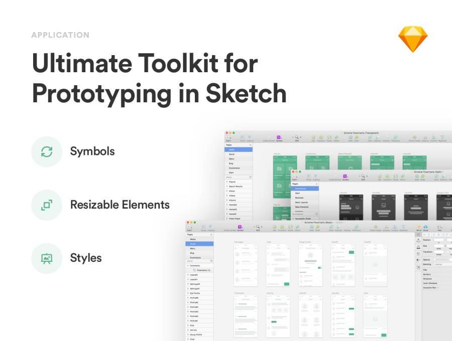 Scheme Mobile Flowcharts是一个用于移动原型设计的大量UX布局。该工具包包含8个类别的120多个流程图。所有流程图都精心制作,易于定制。您可以使用草图符号和样式来加快工作流程。