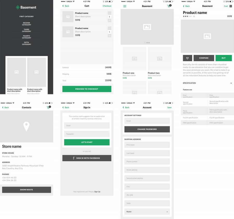 Ecommerce Wireframe Kit