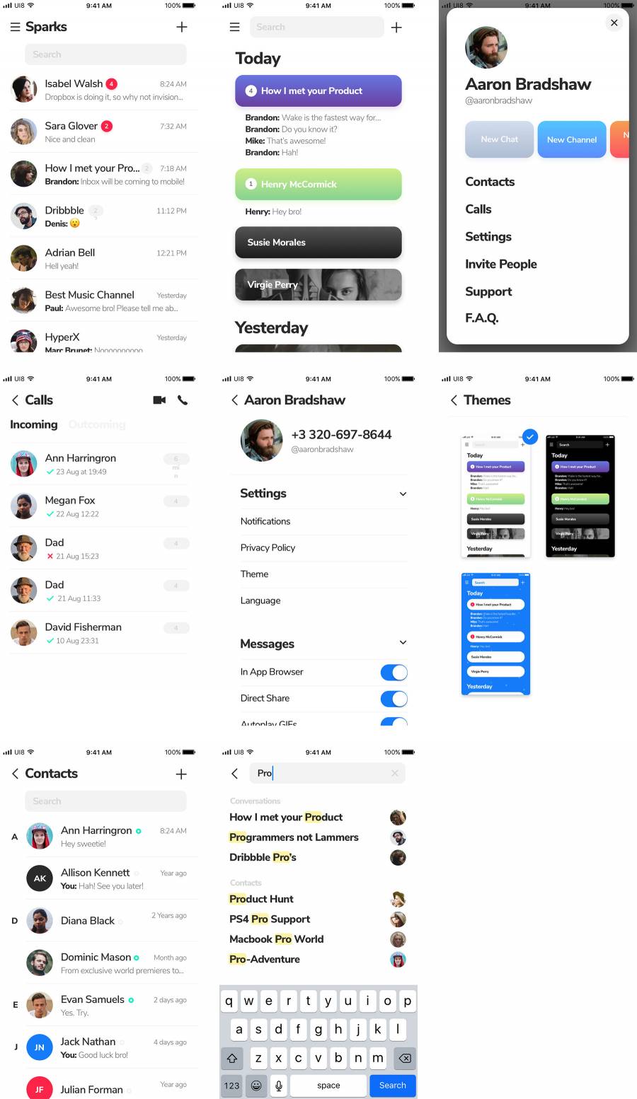 Sparks 联系人应用界面
