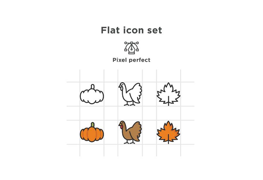 免费的感恩节图标包包含12种图标,线条和颜色两种。这些图标以可编辑的Sketch和AI格式(Adobe Illustrator)呈现给您。这将是完美的温暖你的假期之夜!然后,您可以将它用于感恩卡设计,印刷品,贴纸等等