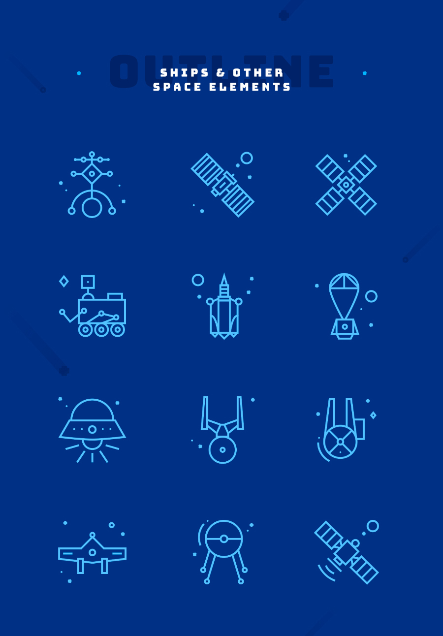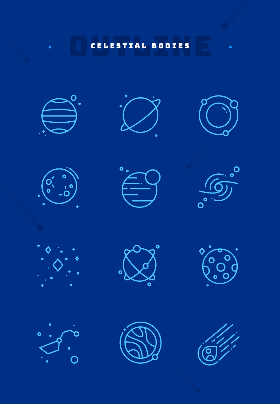 太空免费矢量图像今天在这里为你!来自这个真棒作者埃琳娜德波马尔空间的东西图标有趣的设计包。提供4种不同的PNG文件格式,Ai(Adobe Illustrator),SVG和Sketch,可以灵活处理。这些图标在标志设计,图案和可打印设计的装饰元素上看起来也很棒。