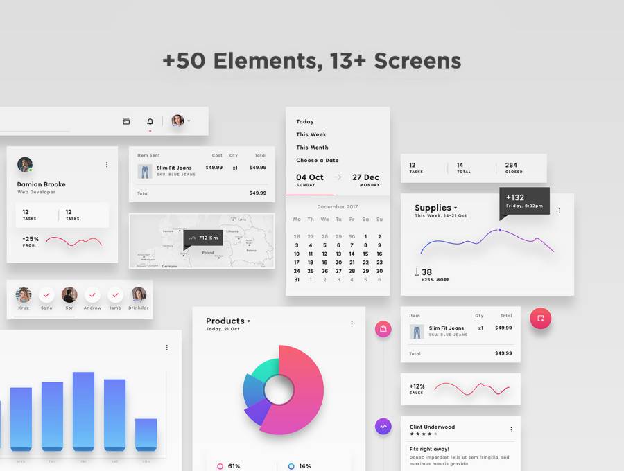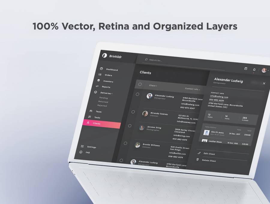 Brinhilder为您提供手工制作的元素集,以创建复杂的管理应用程序。每个元素都经过精炼,使界面在桌面和触摸平台之间无缝地工作,并毫不费力地为您的项目提供一致的体验。它配备了一套13个屏幕,有黑暗和光明主题可供选择。拥有100多种高度可定制的元素,Retina和100%矢量形状。 Brinhildr为您的下一个大项目提供了所有合适的工具!希望你喜欢!查看完整预览了解更多信息。