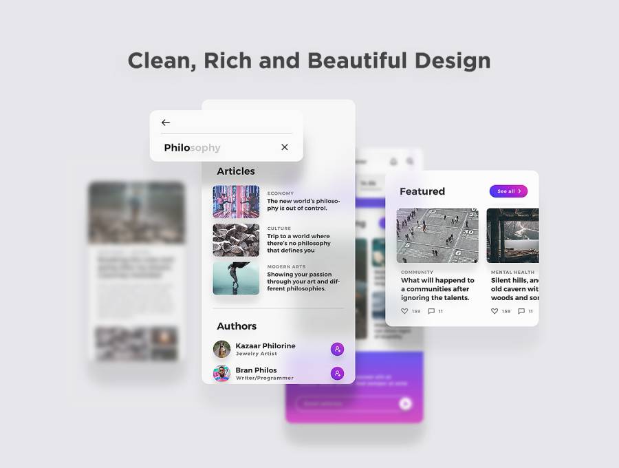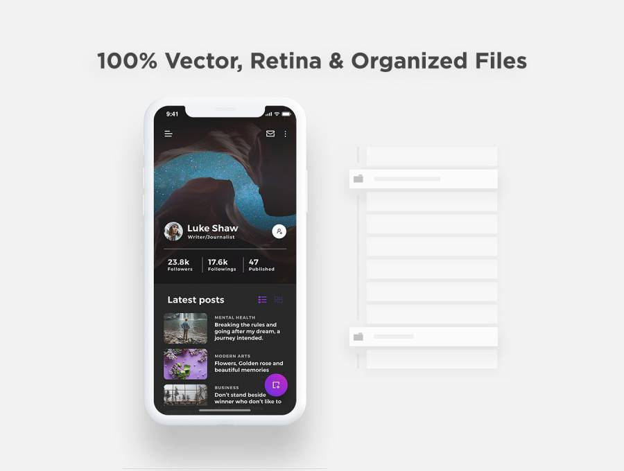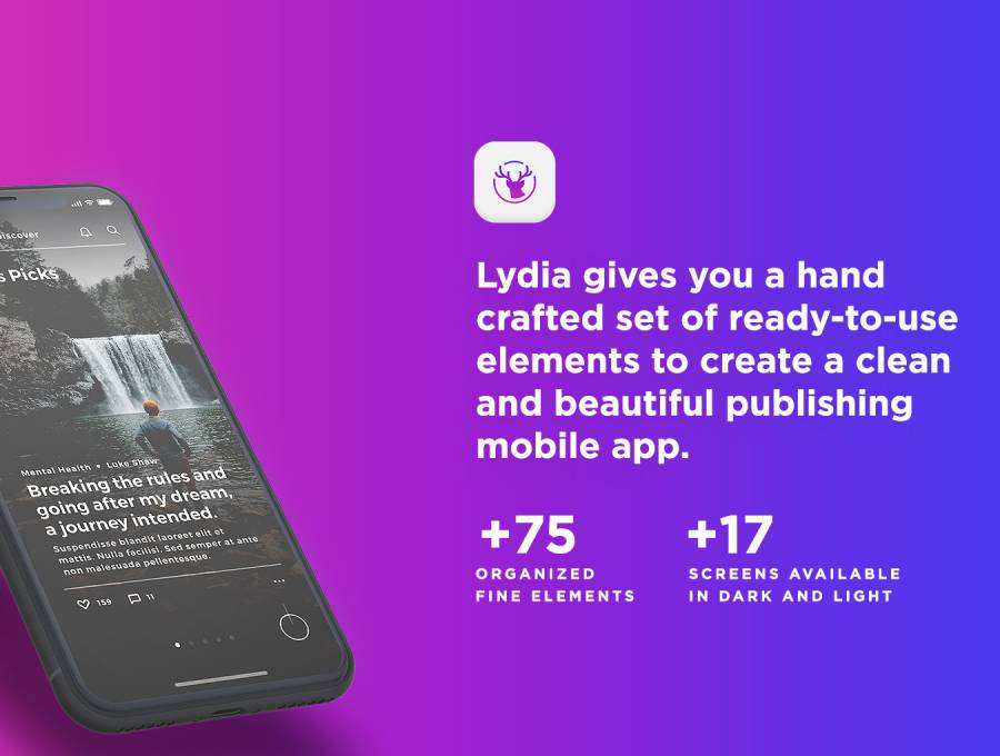 Lydia是一款美观的移动出版和博客应用。专为新的iOS 11和iPhone X而设计,特别为博客和出版用户体验提供优雅和可用性。它配备了17个屏幕,有黑暗和光线主题可供选择。拥有100多种高度可定制的元素,Retina和100%矢量形状。 Lydia为您的下一个大项目提供了所有合适的工具!