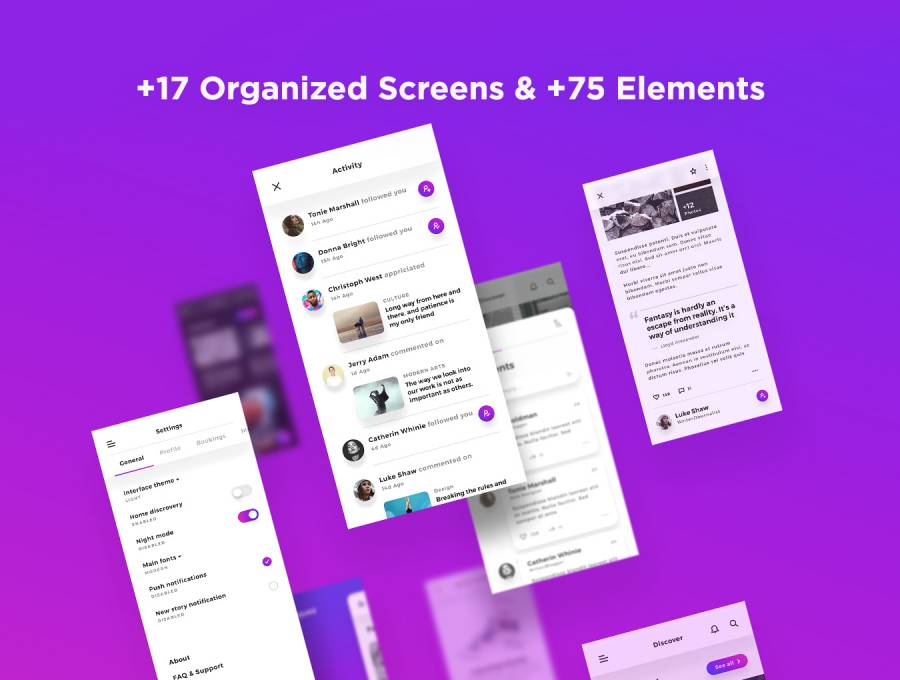 用于Sketch和Photoshop的移动博客和发布UI工具包。,Lydia iOS UI工具包