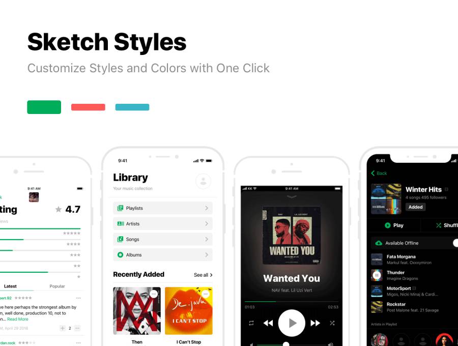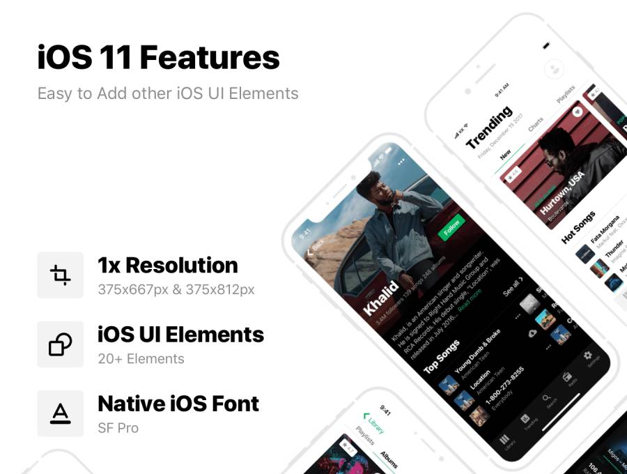 Heavy UI Kit是基于iOS 11的大量布局。音乐是此套装的一个类别。所有组件都经过精心设计,并且可以在Sketch中轻松自定义。该套件包含39个屏幕,UI元素,样式和排版。该套件包含两种屏幕尺寸,iPhone X和iPhone 8以及UI Kit的Light&Dark版本。