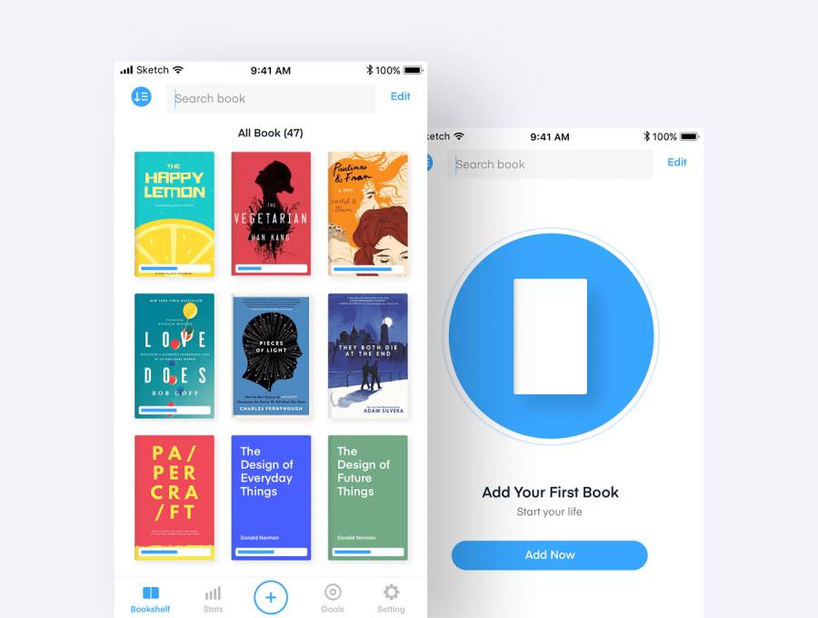 用于iPhone 8的Sketch的书籍跟踪应用程序UI工具包,Policia UI工具包