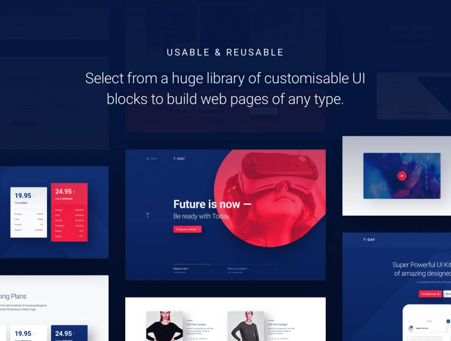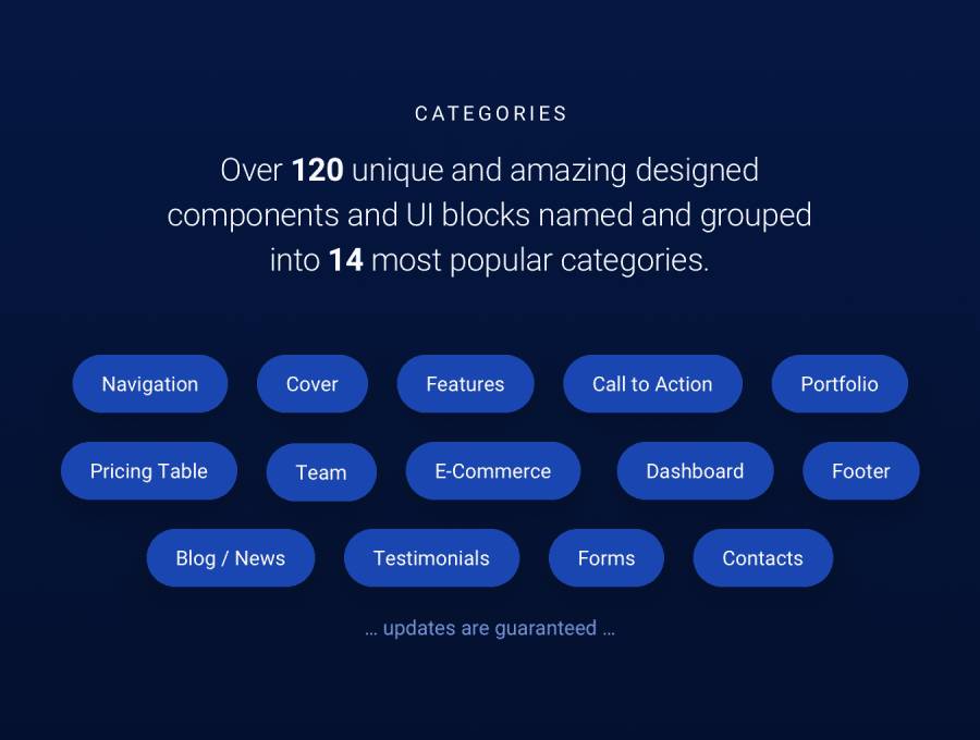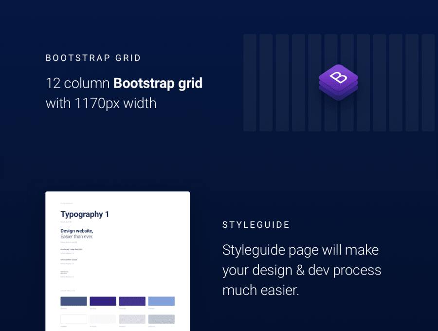 超过120个独特和令人惊叹的设计用户界面块分组,命名和分层为14个最受欢迎的类别。这是设计任何网站,登录页面或Web应用程序所需的一切。一切都是在12列Bootstrap网格下设计的,宽度为1170px,因此组合组件非常容易。此外,还包括样式指南页面,因此您的设计和开发过程将更容易。 请享用!