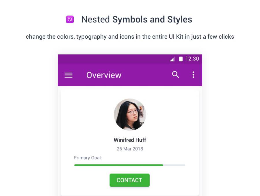 此UI工具包包括符号和图层样式,因此您只需单击几下即可轻松更改整个UI工具包的颜色,图标,排版和一些组件!大多数组件和组也具有响应性和可调整大小,因此您可以快速轻松地将这些屏幕调整为您自己的自定义画板。