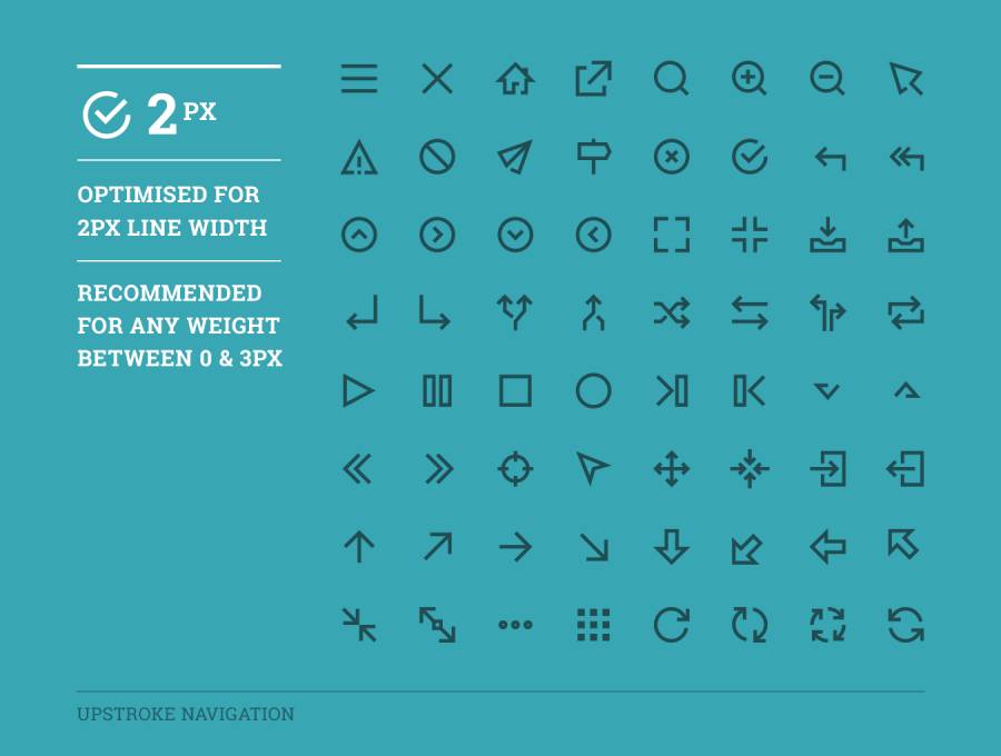 64个具有可调行程宽度的导航图标。,Upstroke导航图标