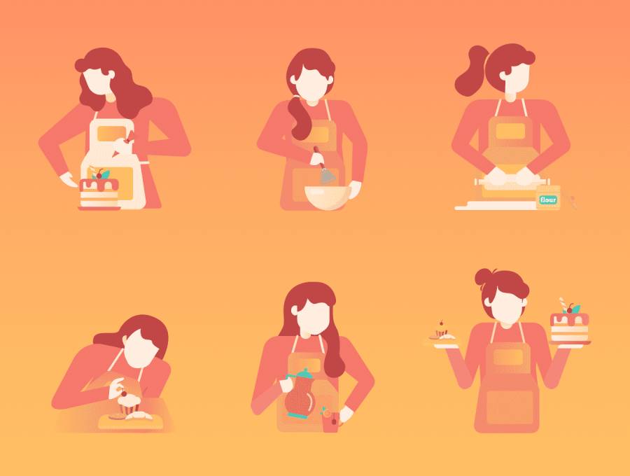 介绍MoKitchen图标和插图套件。使用3个预制背景插图场景,6个女性烹饪和2个厨房相关插图(如烤箱手套,糕点,冰淇淋,法式压力机,厨师帽,厨师小胡子等)创建您自己独特的插图!所有元素都是在Sketch中设计的!本产品提供彩色和单色食品插图和厨房背景。插图是高度可编辑的,颜色很容易编辑,所以根据您的心愿定制!