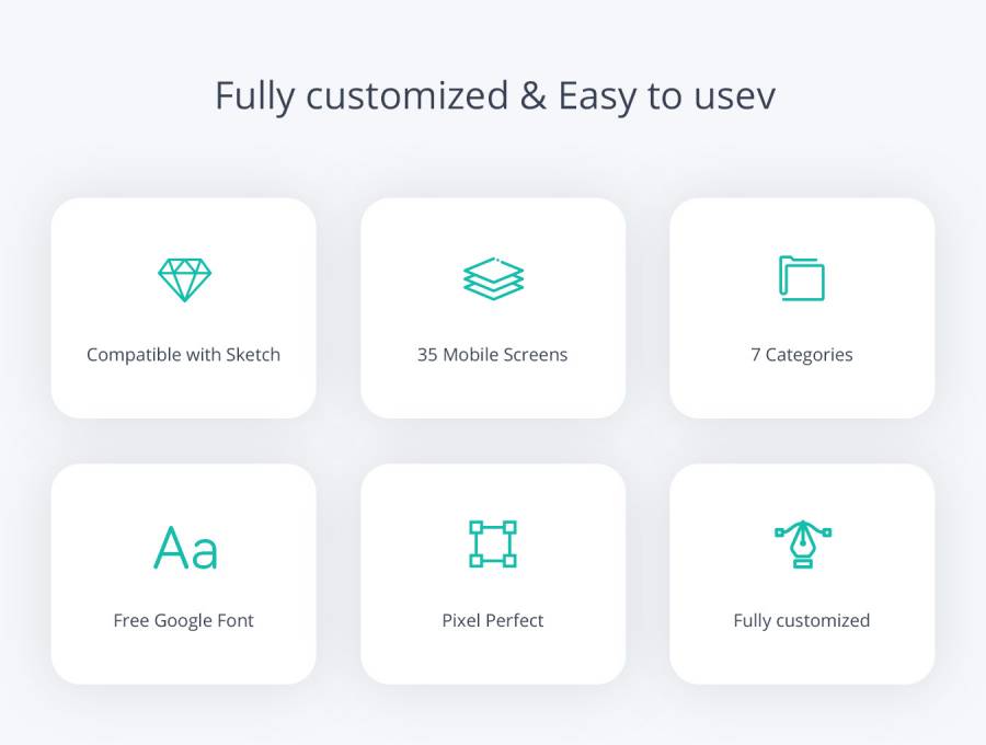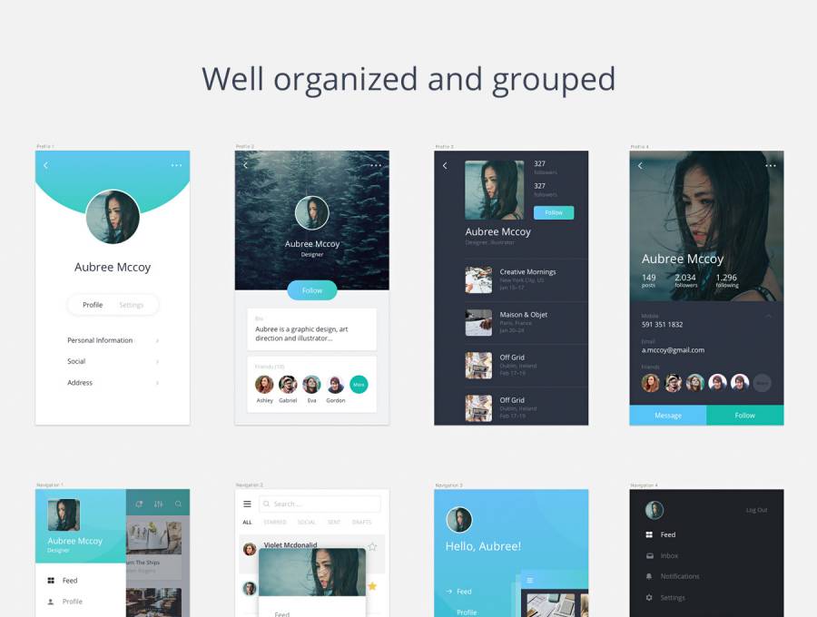 Mint UI Kit包括35个高度可定制的屏幕模板,设计为Sketch,分为7类:登录和注册,演练,社交,个人资料,导航,消息,多媒体。 Mint UI Kit在暗模式下可用。每个屏幕和组件都可以完全自定义,并具有良好命名的图层。