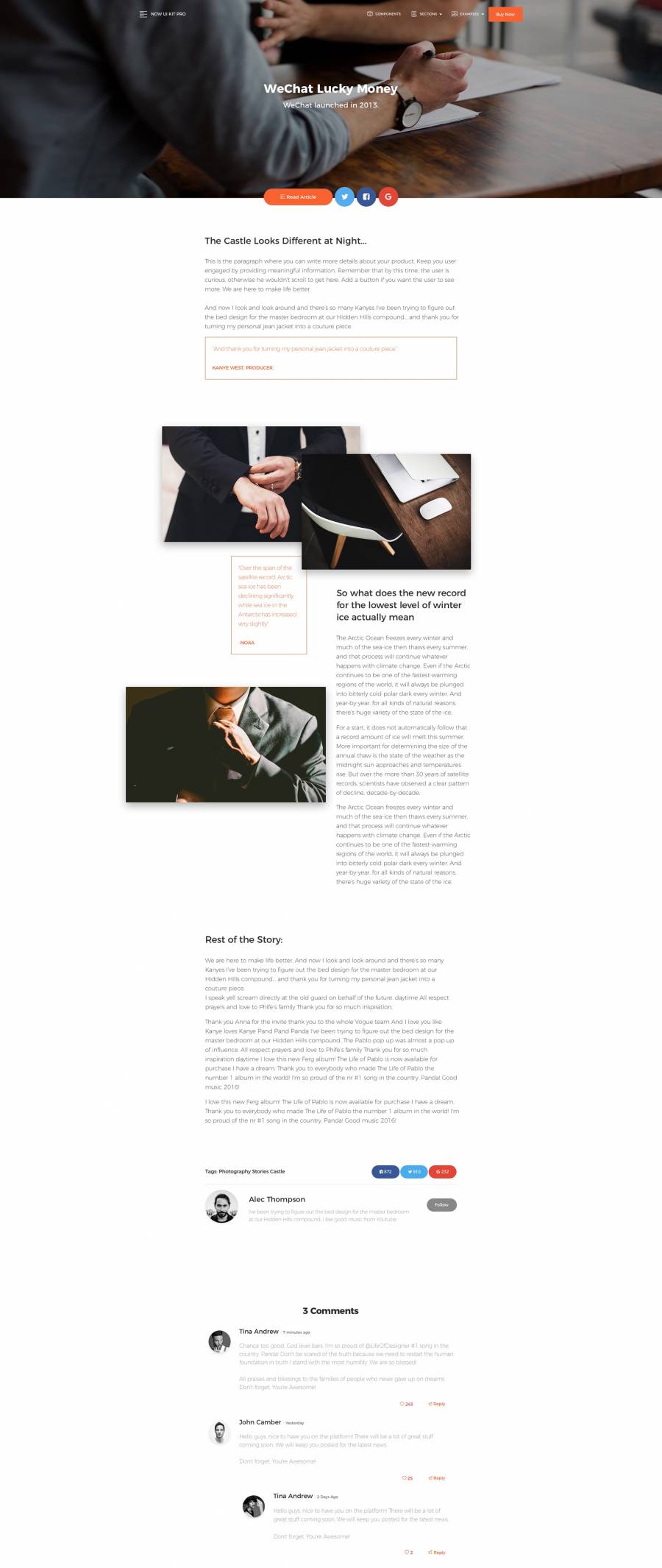 现在,UI Kit PRO将帮助您创建一个干净而简单的网站,它非常适合当今的平面设计。它的设计牢记12列网格系统,其组件设计完美配合。它采用大胆的色彩,漂亮的排版,清晰的摄影和宽敞的布置。
