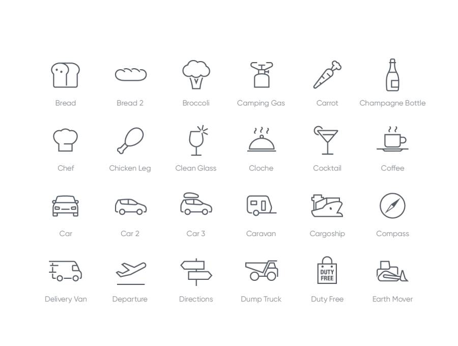 iOS中的220个食物和旅行图标Sketch,Photoshop和Illustrator的有线样式,iOS有线食品和旅行