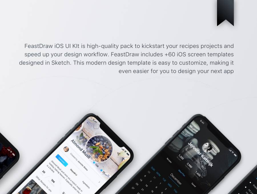 FeastDraw iOS UI KIt是高质量的包,可以启动您的食谱项目并加快您的设计工作流程。 FeastDraw包括+50 iOS屏幕模板,30 Dark和30 Light在Sketch中设计。这个现代设计模板易于定制,使您可以更轻松地设计下一个应用程序。