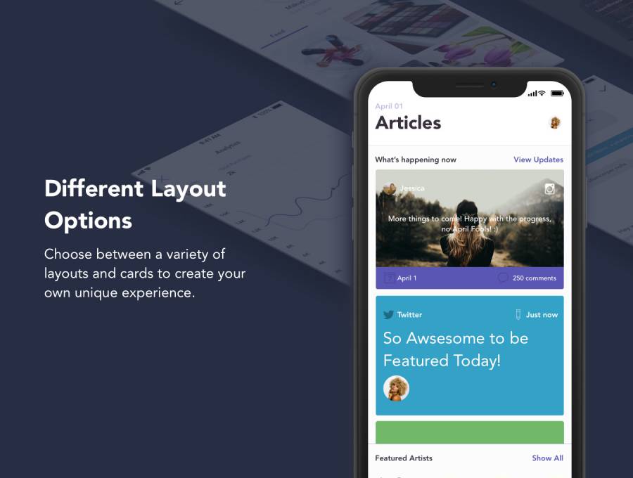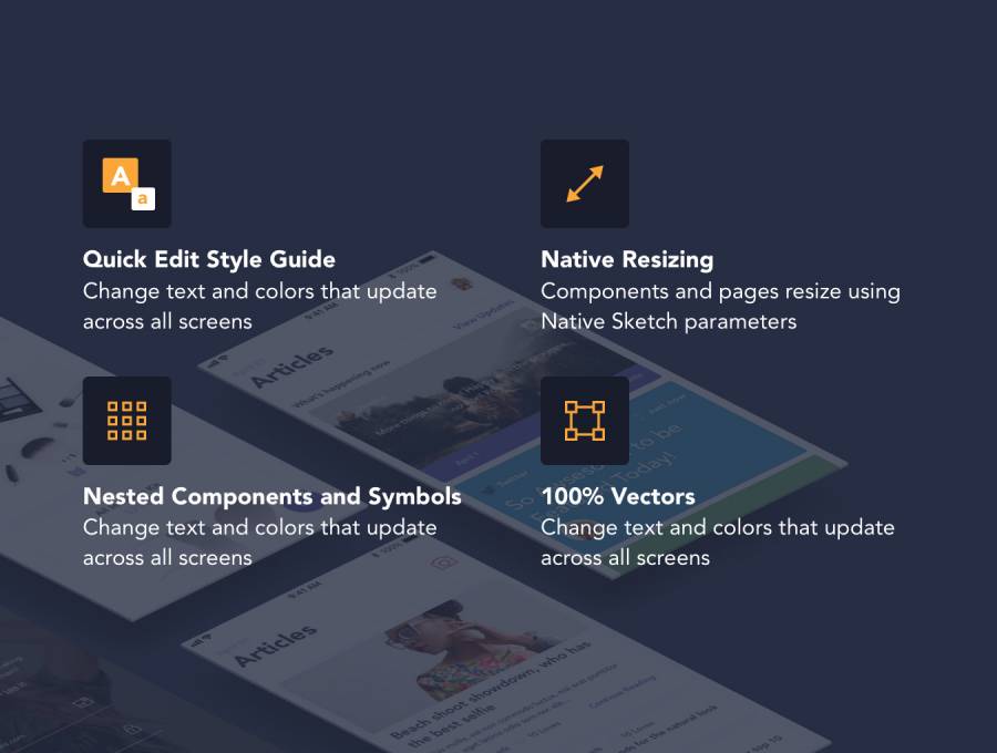 快速更改样式指南:您可以在此处快速编辑所有文本和颜色样本。更新主要调色板或字体系列,并观察组件是否自行更新。超过50个高保真屏幕,分为8个类别:博客和文章,商业,个人资料页面等等,这个套装包含各种屏幕,让您的创意充满活力。适用于iPhone 8和ios11。每个组件和布局都旨在利用Apple的设计原则,包括更大的标题,全屏图像等。正常画板尺寸为375x667。数百种组件组合:从列表到卡片,再到色块,Lilac Studio包含各种展示内容和图像的方式。调整草图中的质量:组件使用原生调整大小功能根据屏幕大小进行调整和重新定位。
