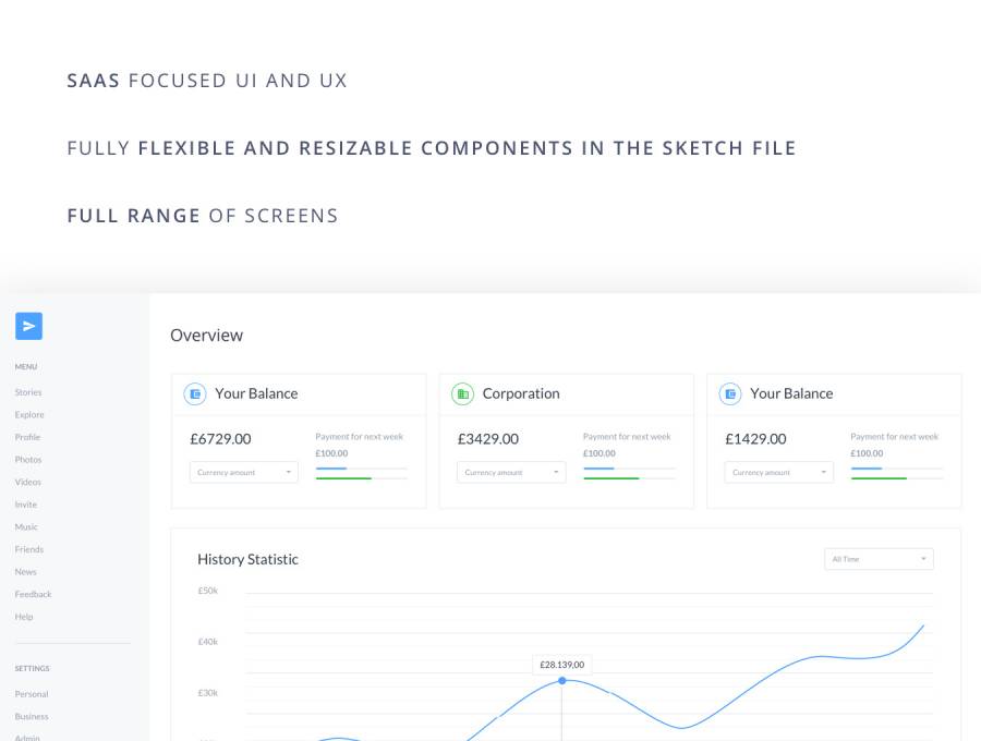 用于Sketch App和Adobe XD的大型仪表板UI工具包,B2B Finance UI Kit