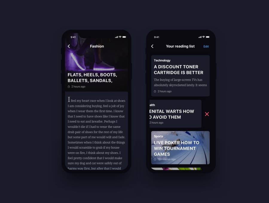专为iPhone X上的任何文章,博客和新闻相关应用而设计。新闻iOS UI套件