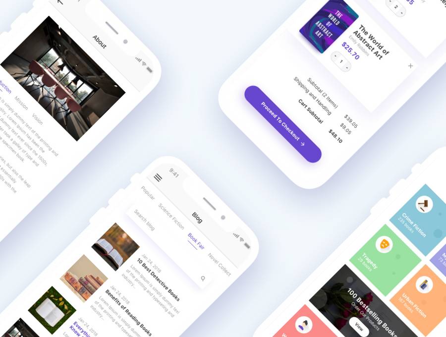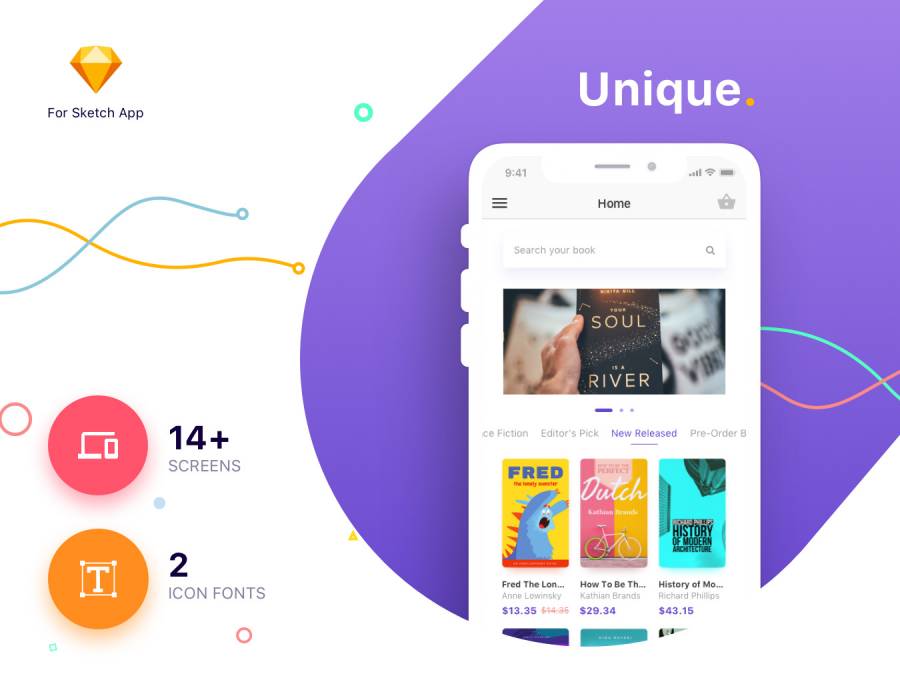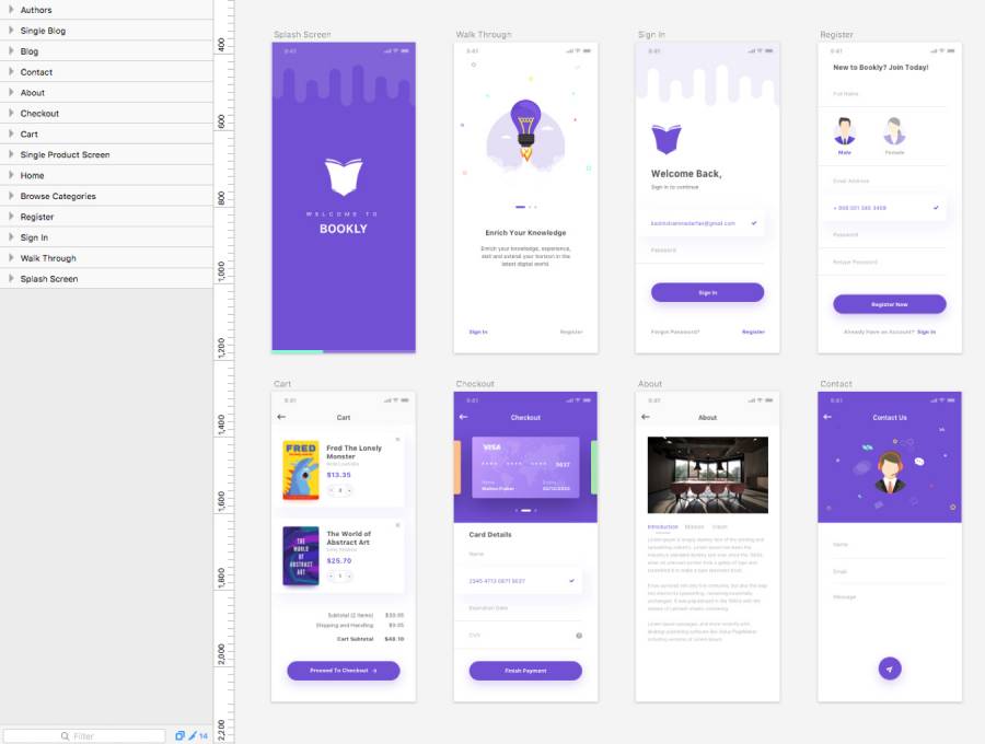 适用于iPhone X和8的Book eCommerce UI工具包,采用Sketch。,Bookly iOS UI工具包设计