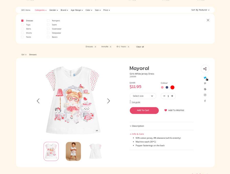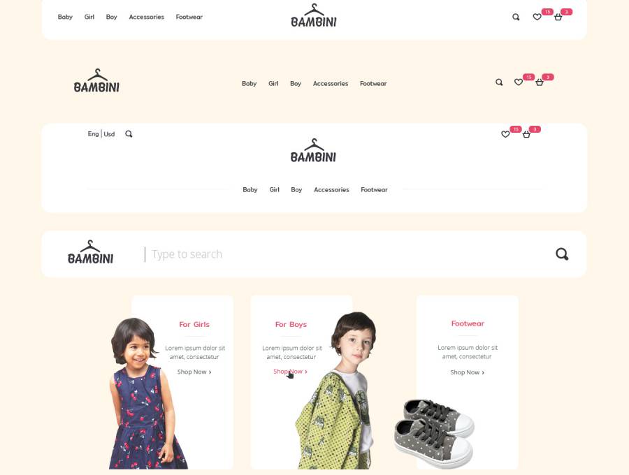 适用于儿童和青少年的Web服装店UI套件。,Bambini Web UI套件